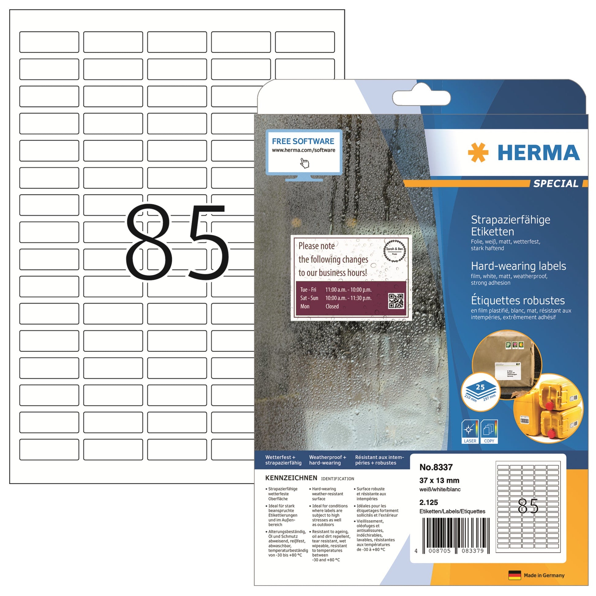 Bezeichnung: HERMA Folienetikett SPECIAL 37 x 13 mm (B x H) weiß 2.125 Etik./Pack.