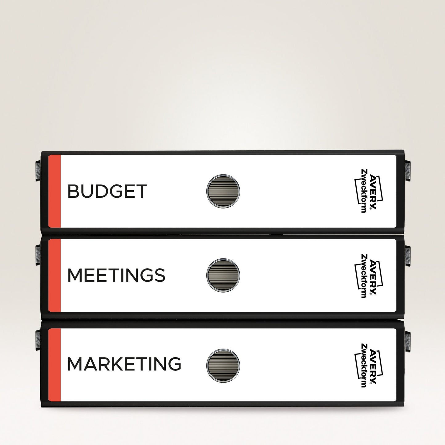 Bezeichnung: Avery Zweckform Ordnerrückenetikett ultragrip breit/lang 63 x 297 mm (B x H) selbstklebend mit Griffloch weiß 75 Etik./Pack.
