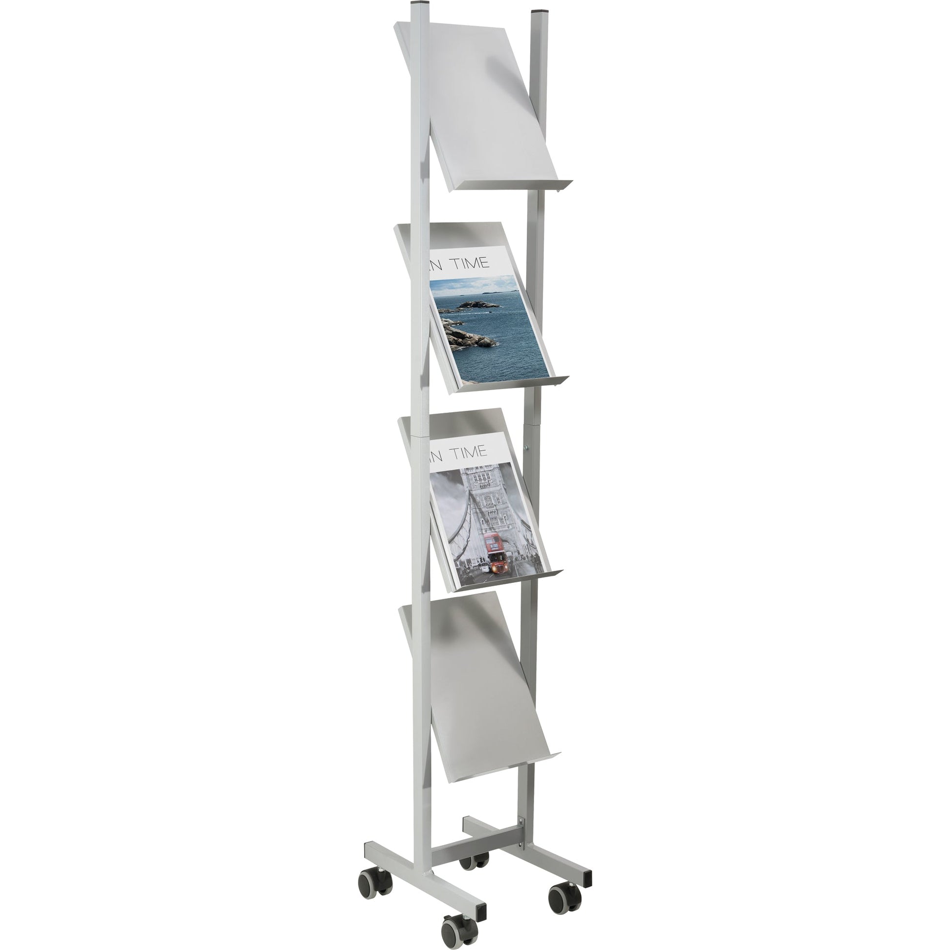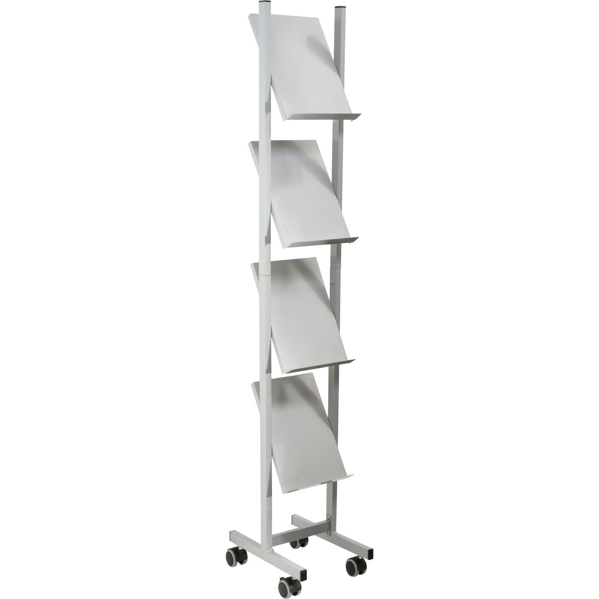 Bezeichnung: helit Prospektständer the rolling show 26 x 158 x 39 cm (B x H x T) Metall silbergrau 4 Fächer