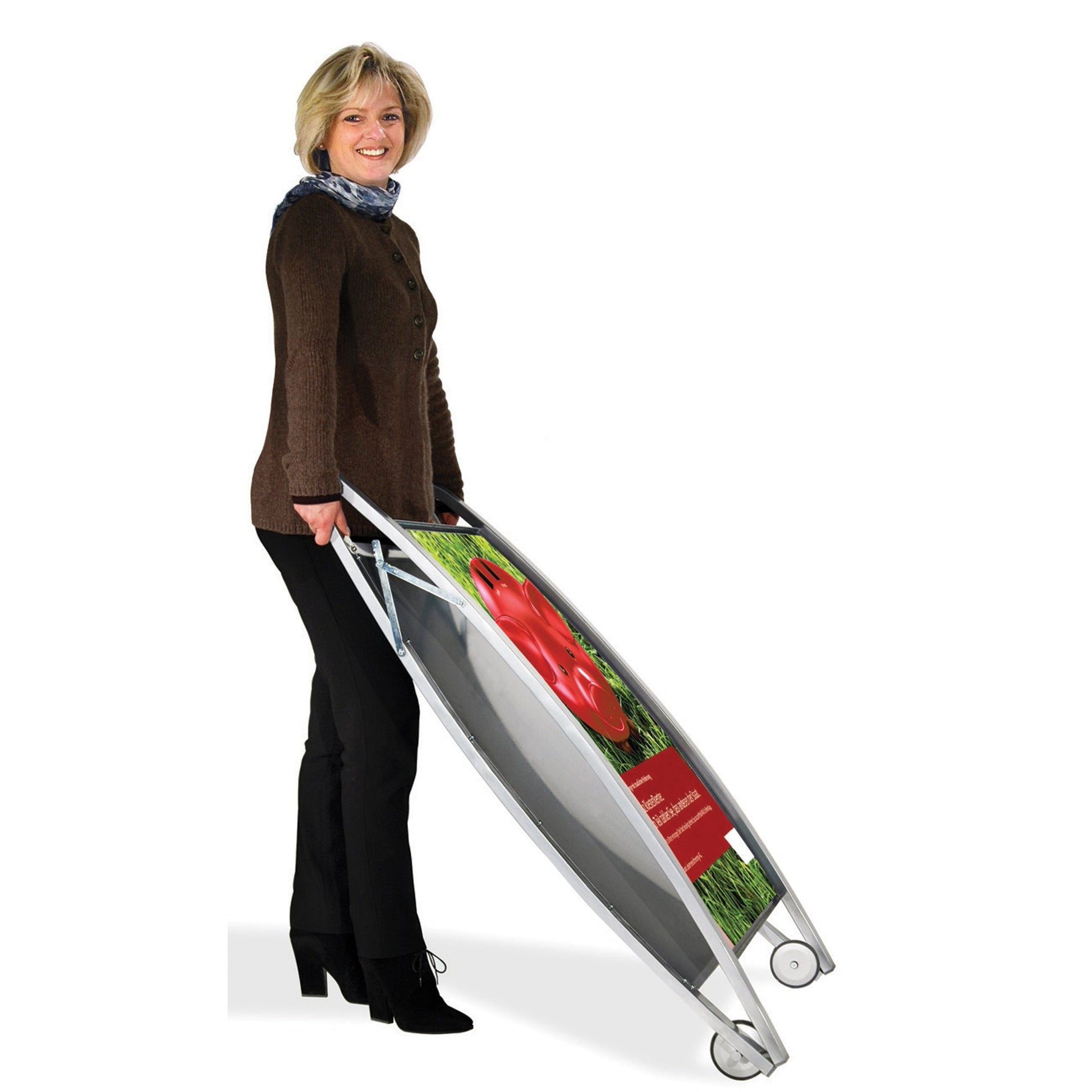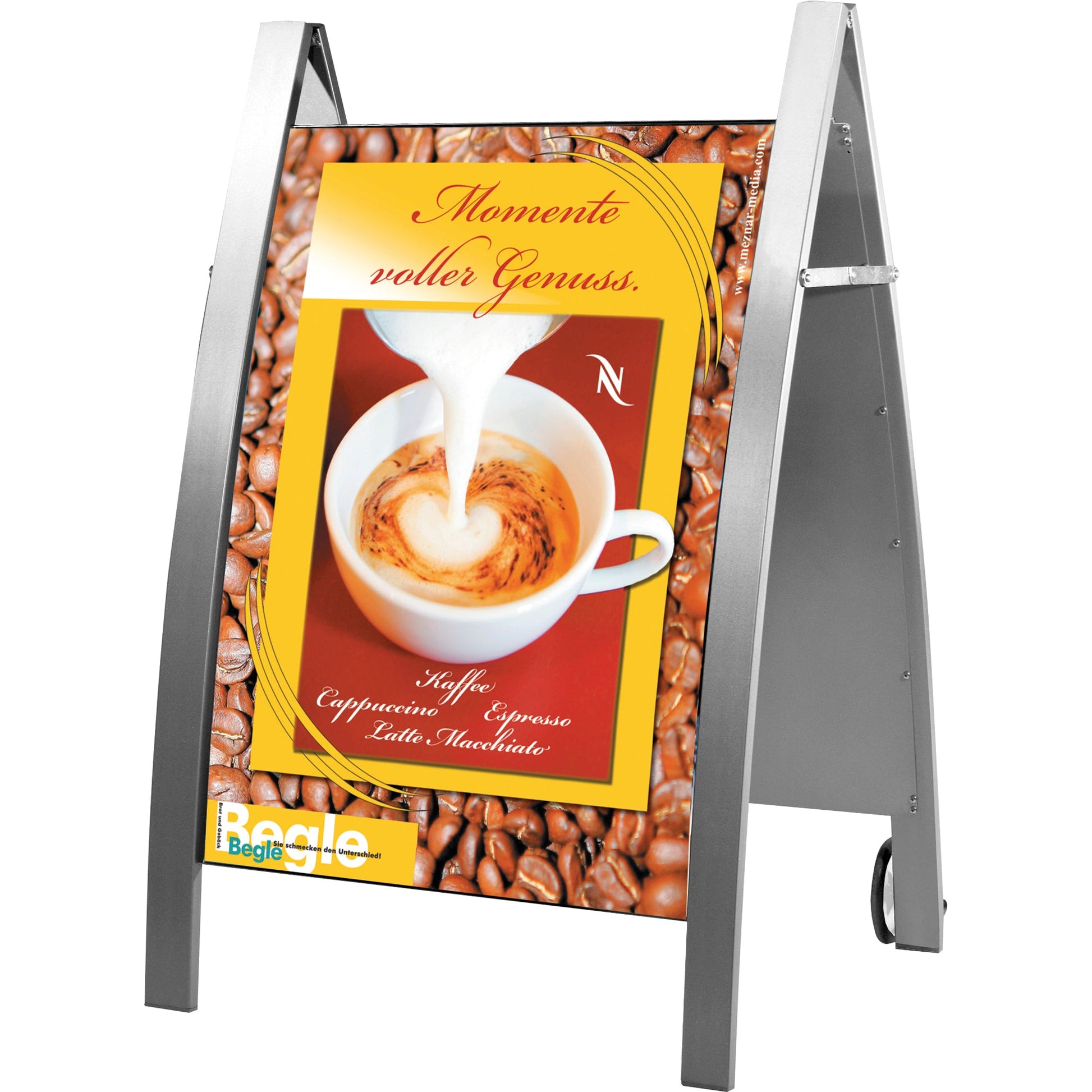 Bezeichnung: Kerkmann Kundenstopper Boston 72 x 115 x 70 cm (B x H x T) DIN A1 Vierarmfuß mit 2 Rollen Stahl silber