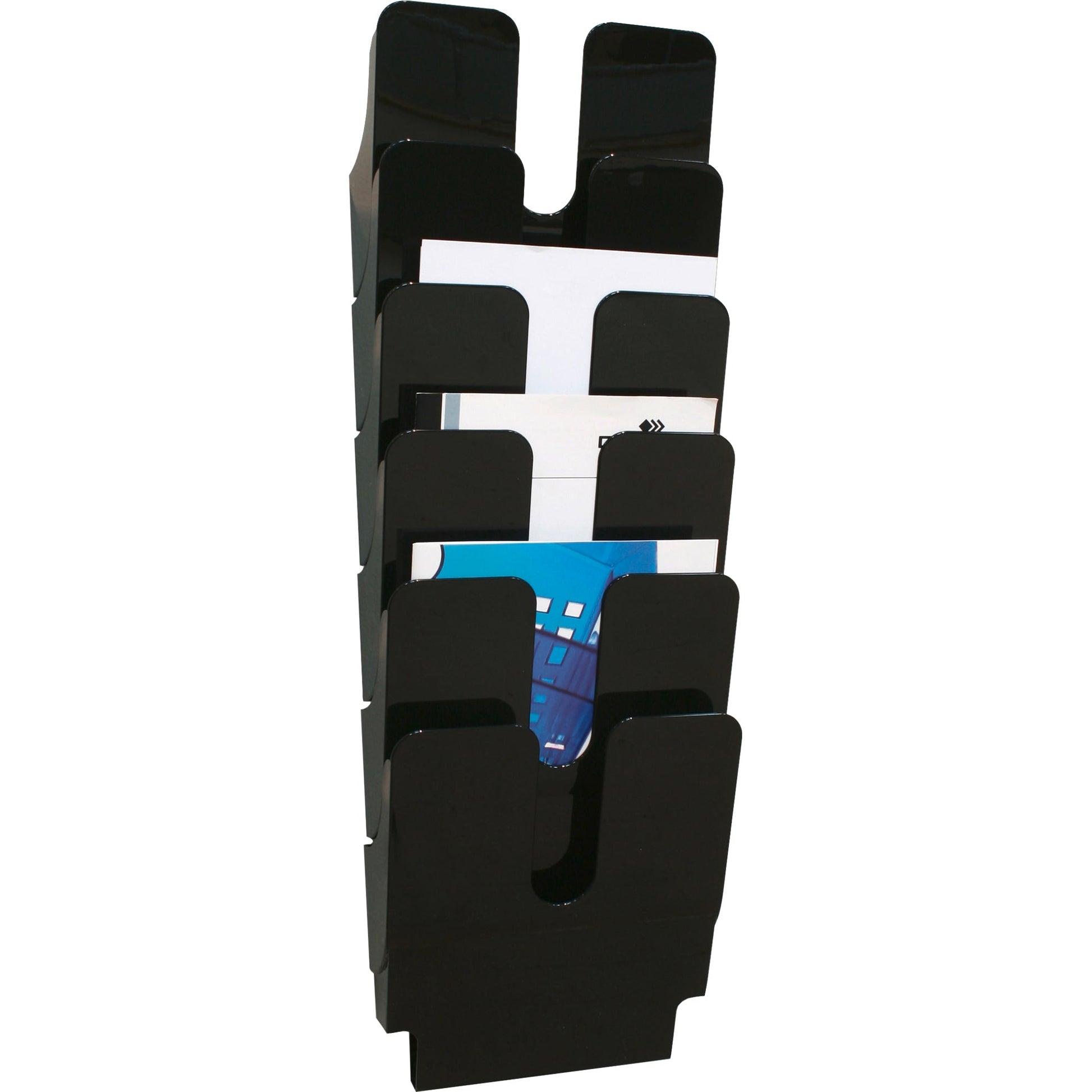 Bezeichnung: DURABLE Prospekthalter FLEXIPLUS 6 24,7 x 108 x 10 cm (B x H x T) DIN A4 Polystyrol schwarz 6 Fächer