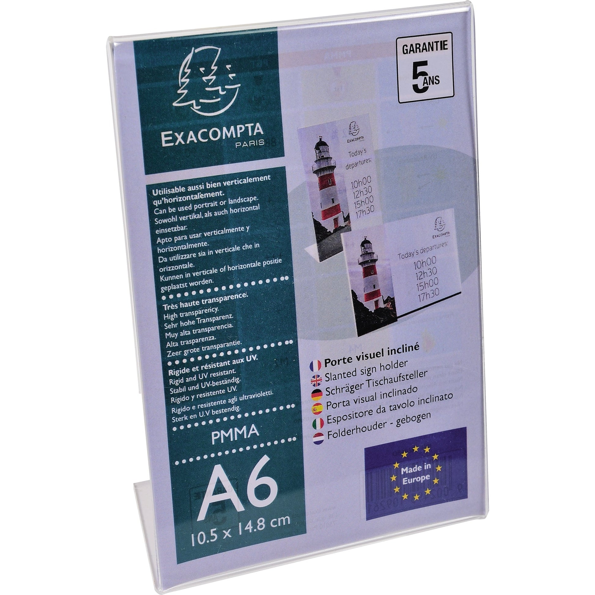 Bezeichnung: Exacompta Tischaufsteller Office Exacryl 10,5 x 15,4 x 5,5 cm (B x H x T) DIN A6 beidseitig verwendbar Acryl kristall