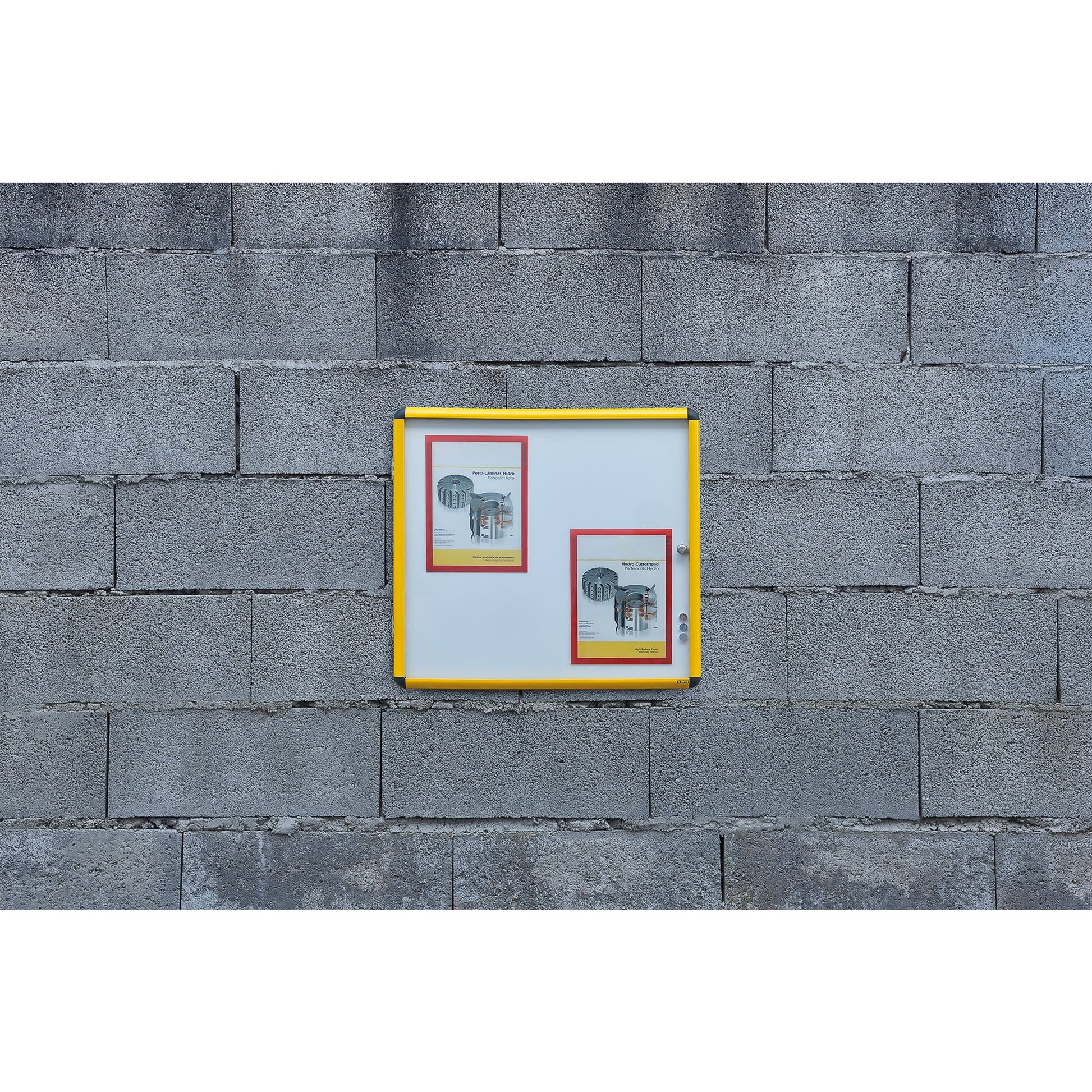 Bezeichnung: Bi-office Schaukasten Enclore Ultrabrite Innenbereich 50 x 67 x 3,5 cm (B x H x T) 4 x DIN A4 mit Schloss Aluminium gelb
