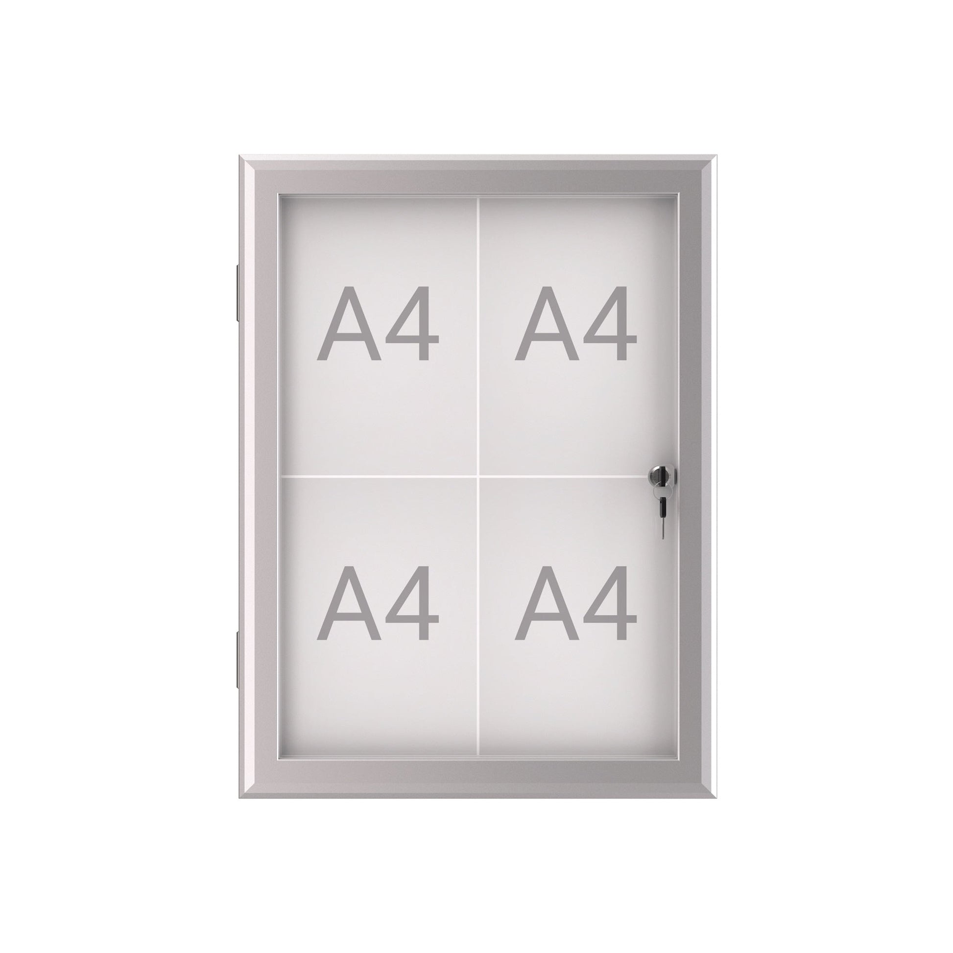 Bezeichnung: MAUL Schaukasten MAULexcite Innenbereich, regengeschützter Außenbereich 52,2 x 69,6 x 2,8 cm (B x H x T) 4 x DIN A4 mit Schloss Aluminium silber