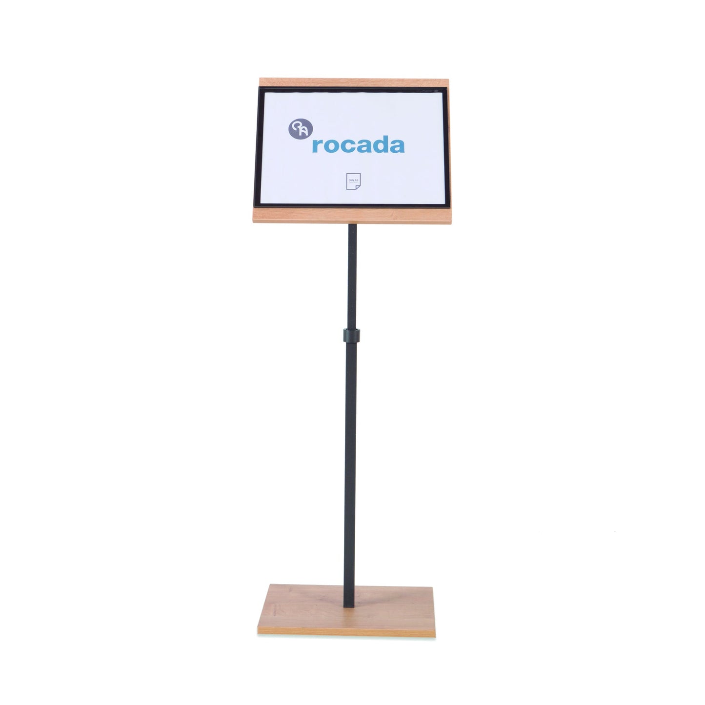 anthrazitNatürlich und warm: Eleganter Infoständer in hochwertiger Holzoptik (Eiche). Hoch- und Querformat: Tafel um 360° drehbar. Stabil und standfest.