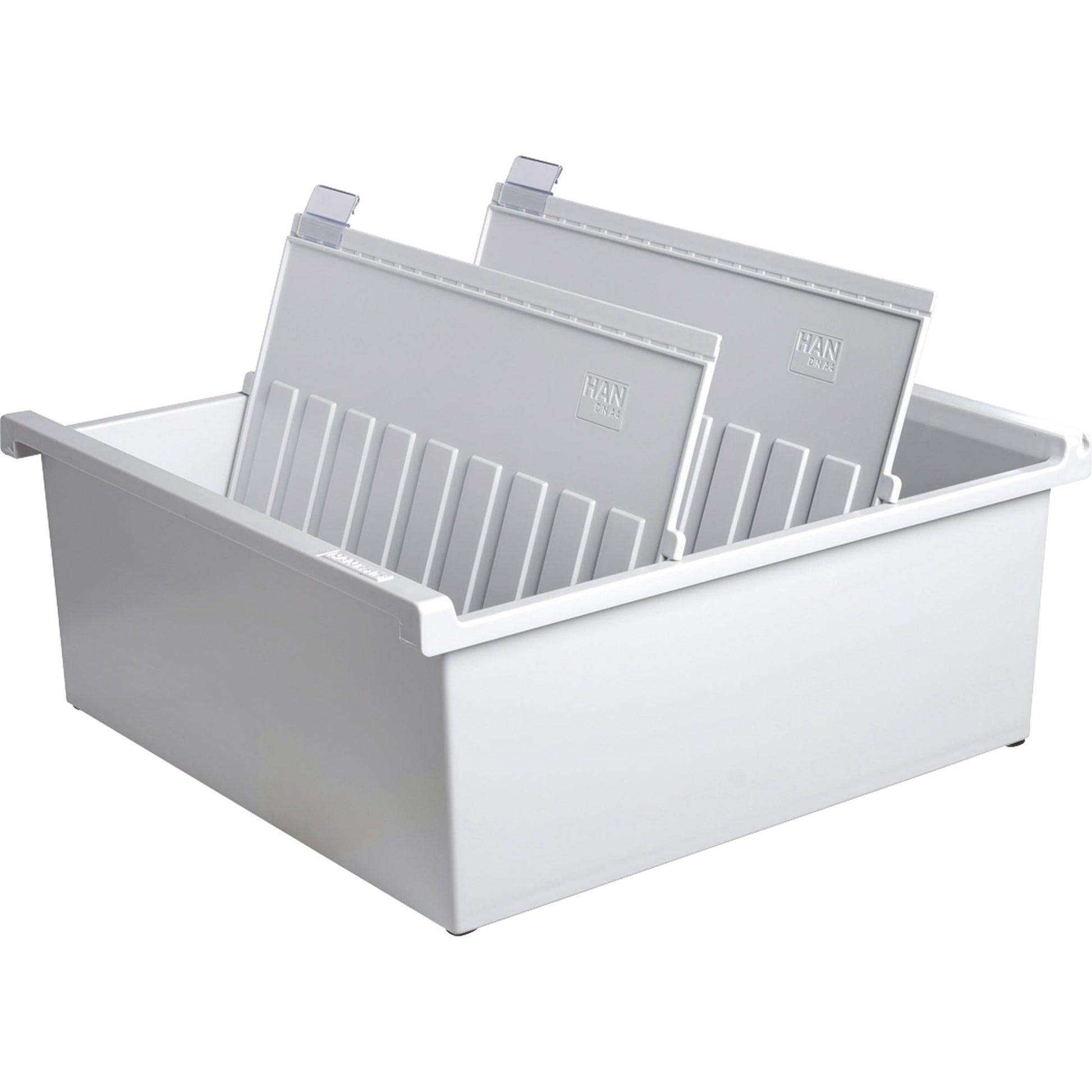 Bezeichnung: HAN Karteitrog 32,2 x 13,8 x 34,6 cm (B x H x T) DIN A4 quer 1.300 Karten Polystyrol lichtgrau 2 Stützplatten