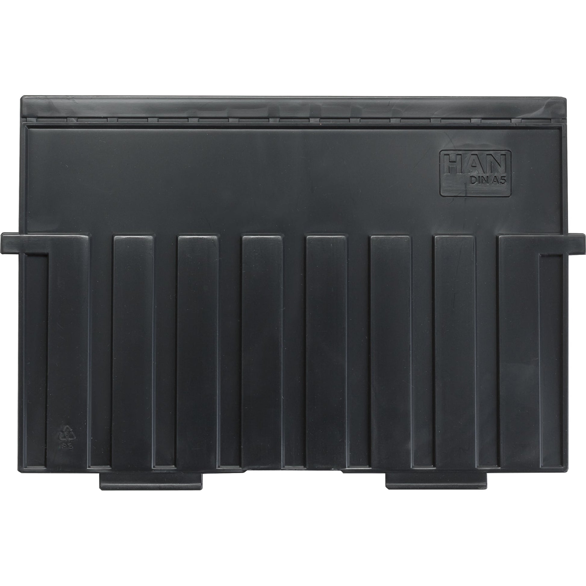 schwarzStützplatte zum Einrasten für HAN Karteitröge und -kästen. Perfekte Organisation mit unbegrenzten Möglichkeiten. Mit spezieller Rasterung für verschiebbaren Sichtreiter. Zubehör optional: verschiebbarer Sichtreiter (Art.-Nr. 9001).