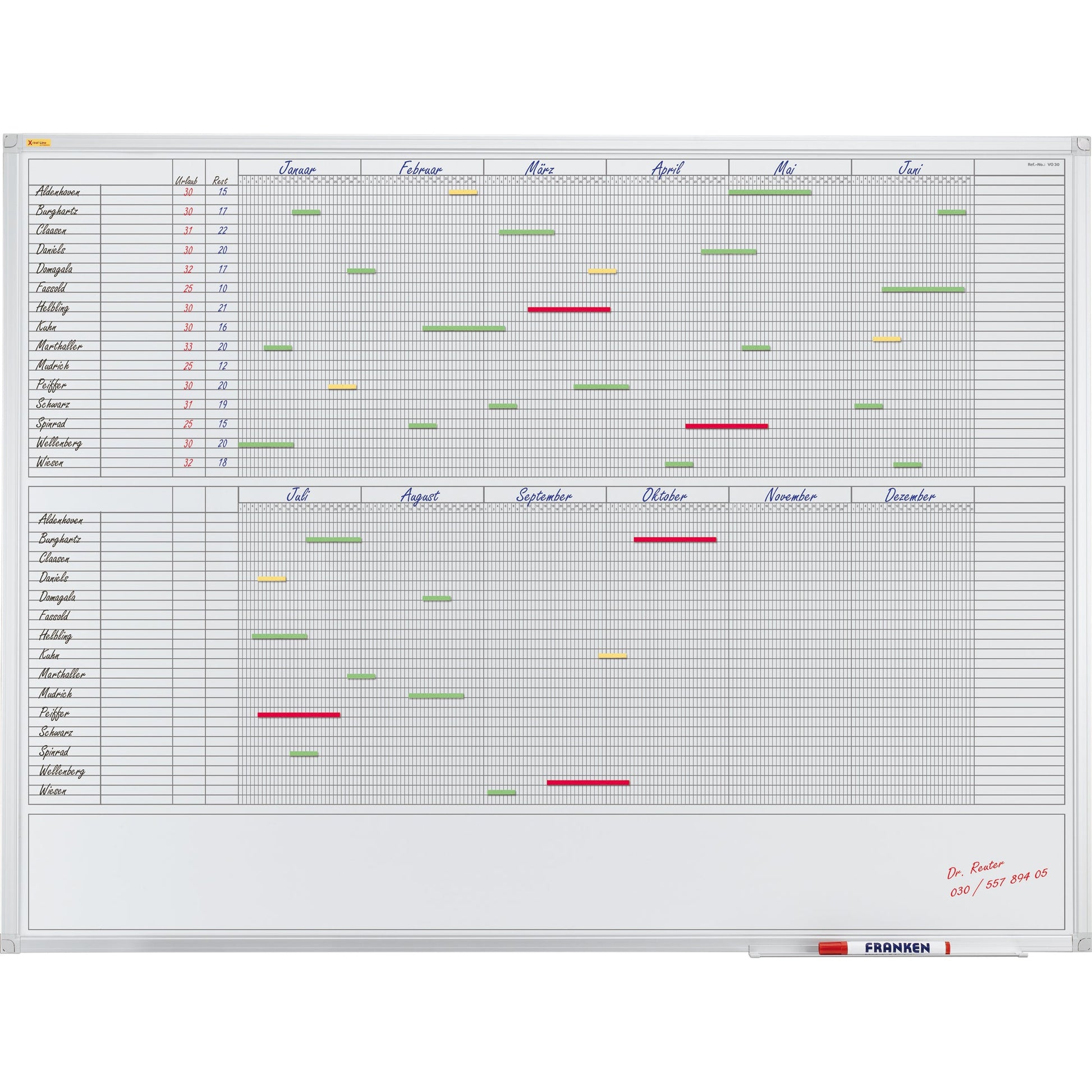 Bezeichnung: FRANKEN Jahresplaner X-tra!Line 120 x 90 cm (B x H) 12 Monate 30 Mitarbeiter/Projekte Aluminium/Kunststoff weiß