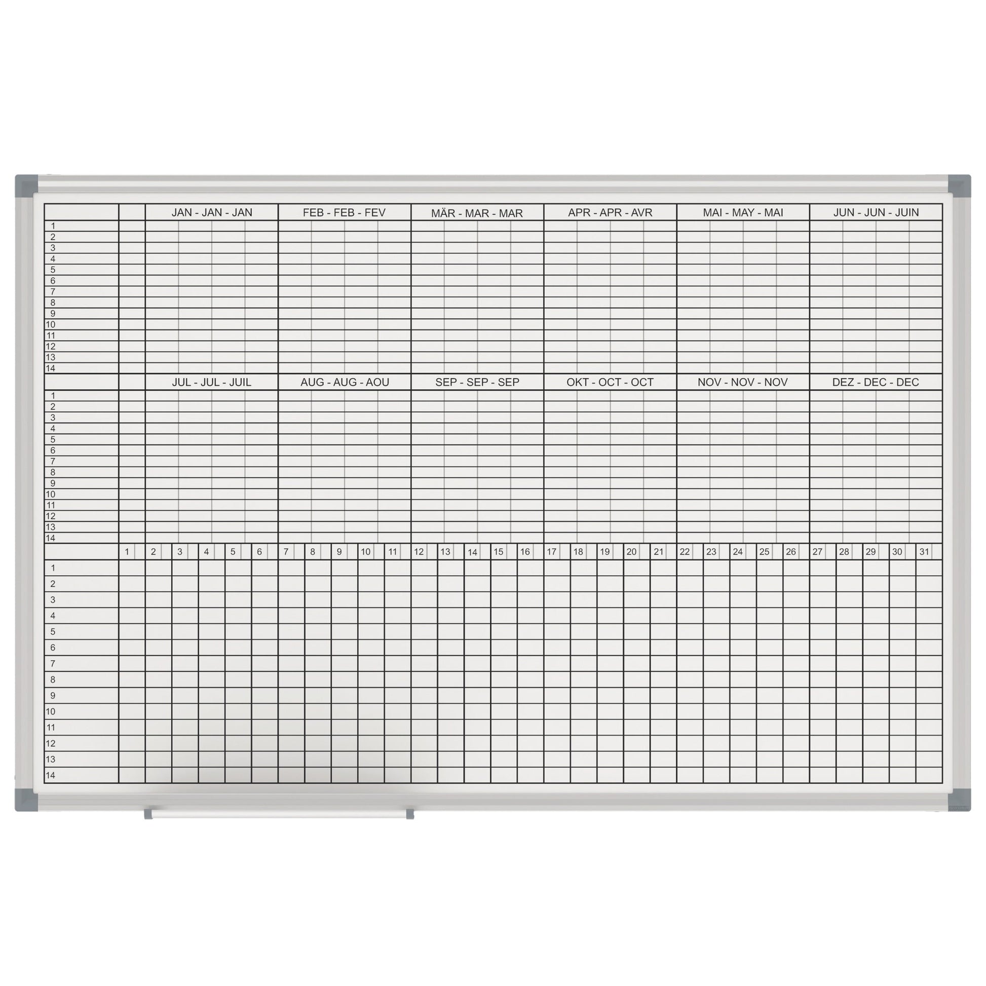 Bezeichnung: MAUL Jahresplaner MAULstandard 90 x 60 cm (B x H) 12 Monate/52 Wochen Aluminium grau