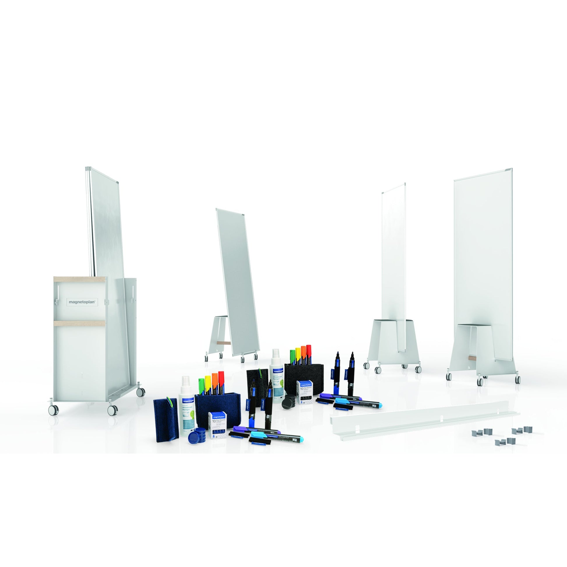 Bezeichnung: magnetoplan® Whiteboard Design Thinking Bundle Medium Maße der Oberfläche: 90 x 178 cm (B x H) Tafel magnethaftend beidseitig beschreibbar