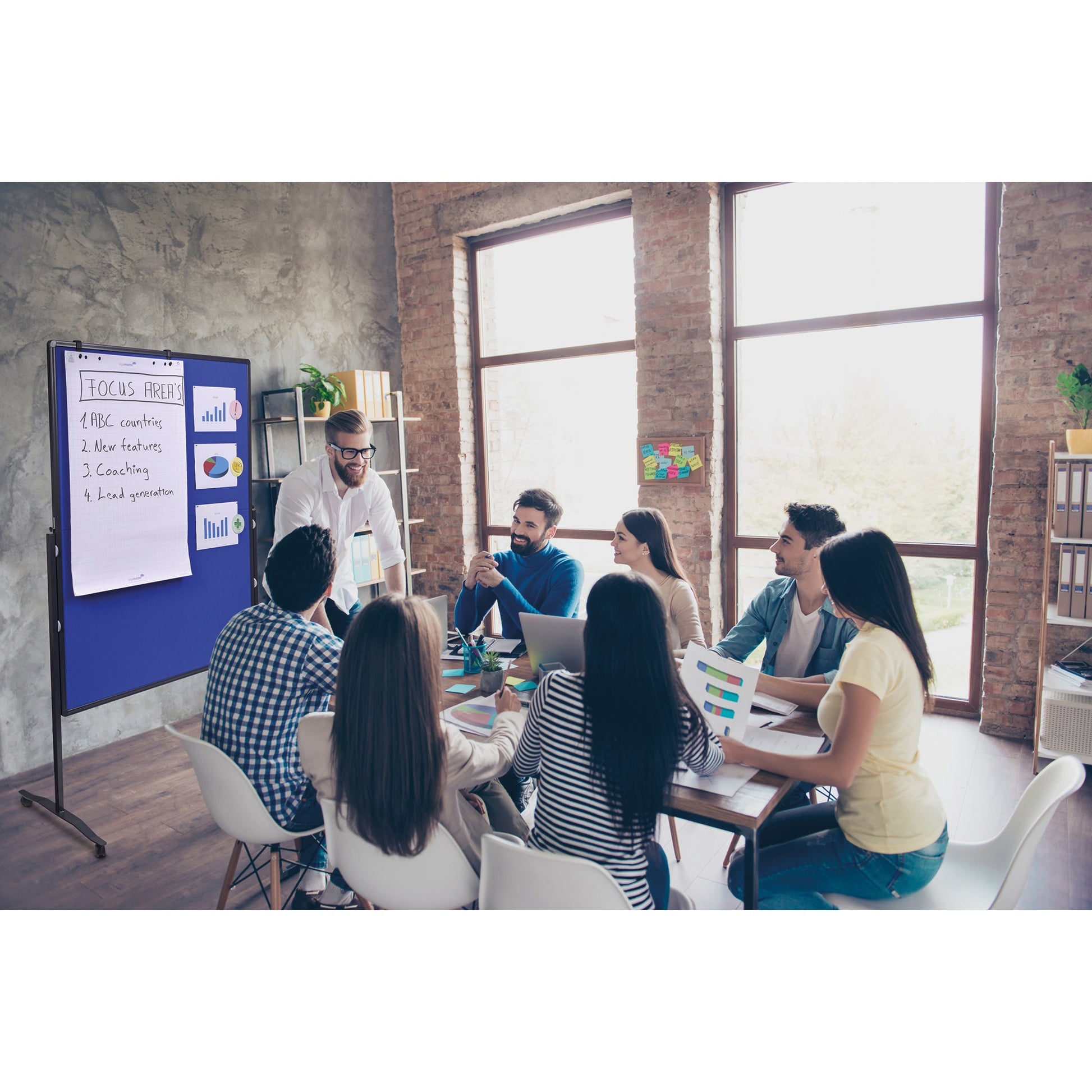 Bezeichnung: Legamaster Moderationstafel PREMIUM PLUS mobil Maße der Oberfläche: 120 x 150 cm (B x H) höhenverstellbar inkl. Flipcharthaken Filz marineblau