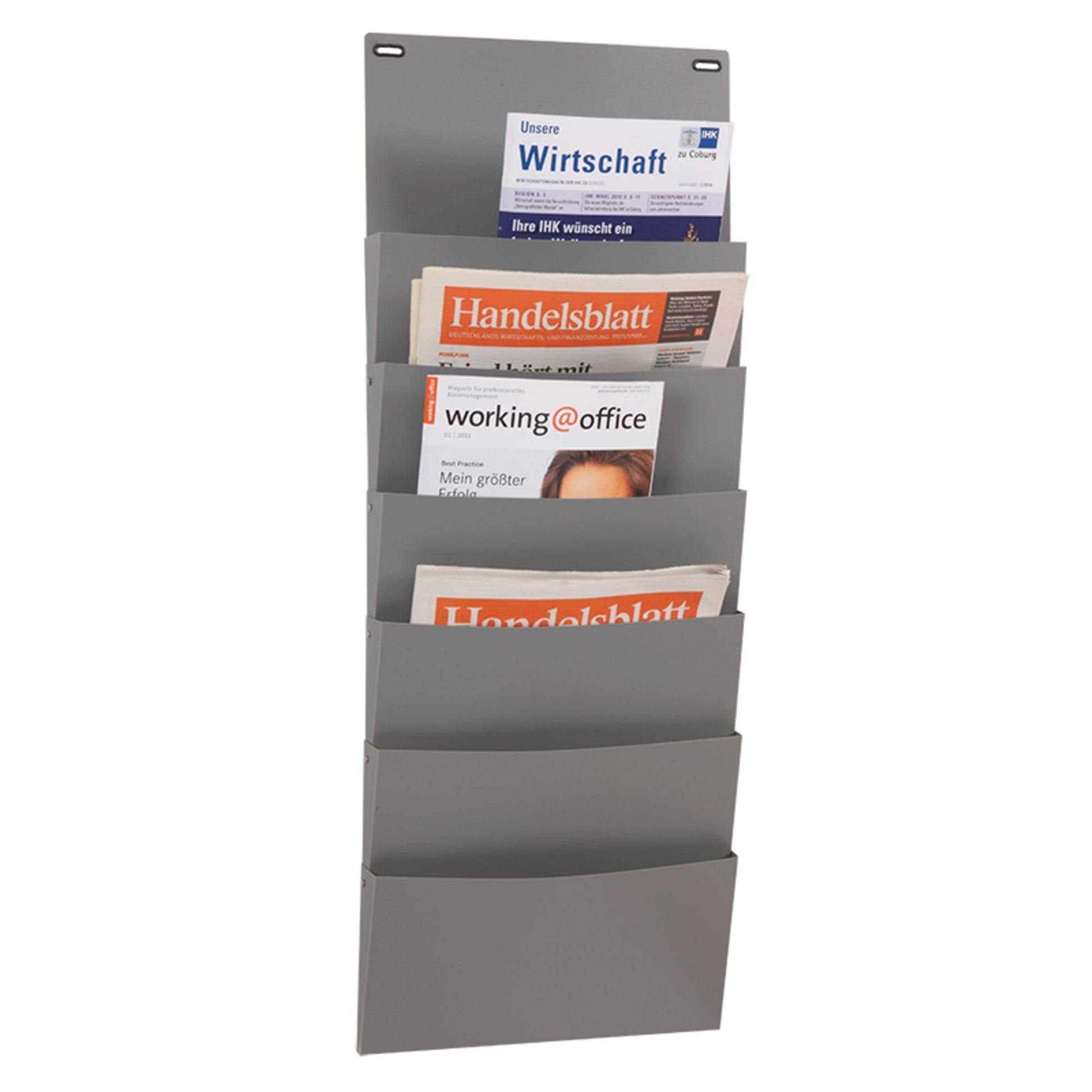 Bezeichnung: EICHNER Prospekthalter 21 x 90,5 x 5 cm (B x H x T) DIN A5 Polypropylen grau 6 Fächer