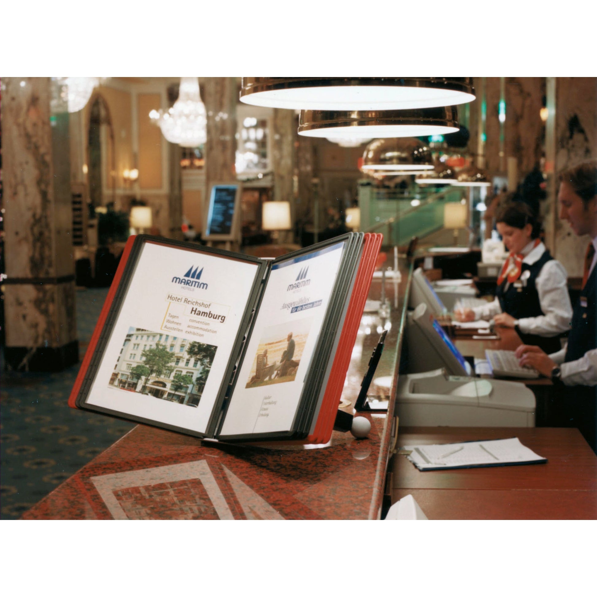Bezeichnung: DURABLE Sichttafelständer SHERPA® TABLE 10 53 x 40,5 x 38 cm (B x H x T) Kunststoff Anzahl der mitgelieferten Sichttafeln: 10 Sichttafeln je 5 x grau, schwarz