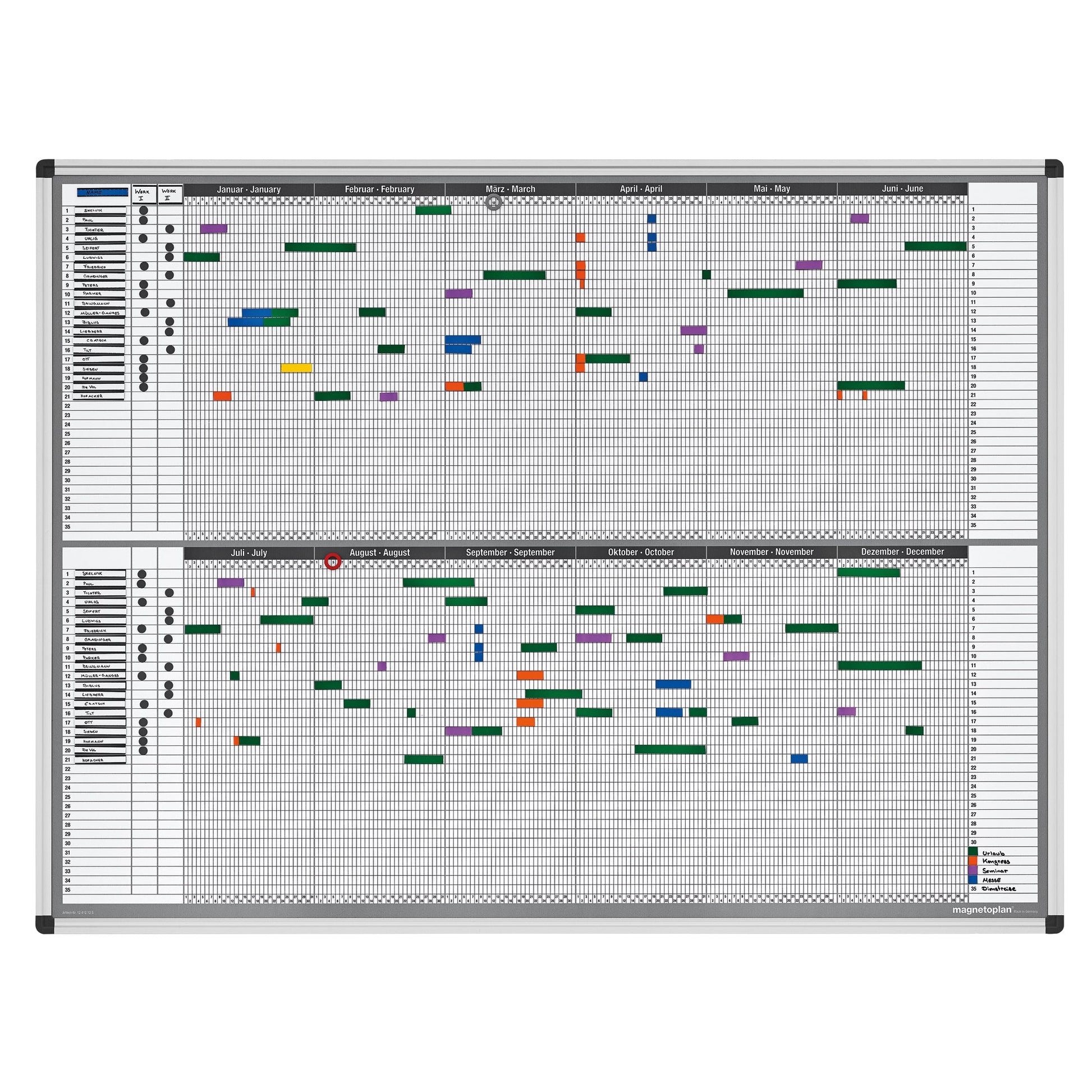 Bezeichnung: magnetoplan® Jahresplaner 121,5 x 91,5 cm (B x H) 35 Mitarbeiter/Projekte inkl. 1 Boardmarker, 1 OHP-Marker, 1 Datumsmagnet Aluminium weiß