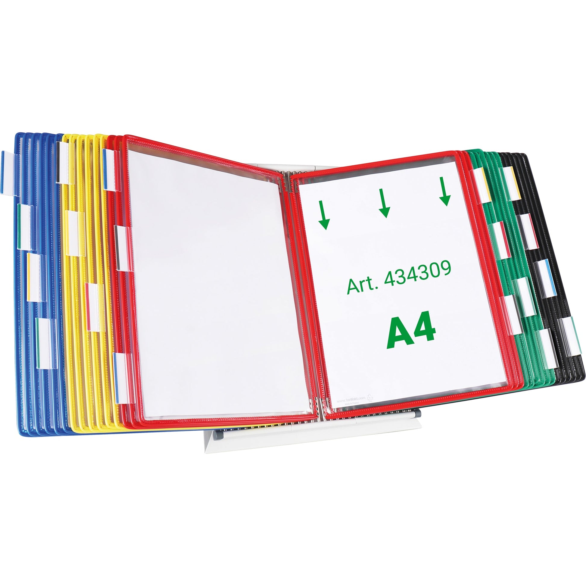 Bezeichnung: DJOIS Sichttafelständer Tarifold 30 x 24 x 38 cm (B x H x T) Stahlblech Anzahl der mitgelieferten Sichttafeln: 30 Sichttafeln je 6 x blau, rot, gelb, grün, schwarz
