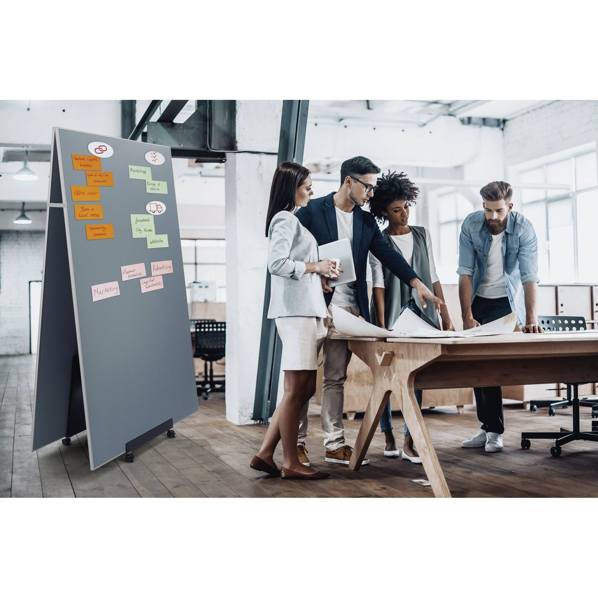 Bezeichnung: SIGEL Präsentationswand Meet up Bundle 120 x 180 x 1,7 cm (B x H x T) inkl. Präsentationswand Textil 120 x 180 cm (B x H) MU011, Tafelständer Meet up MU050, Moderationskoffer MU250 grau