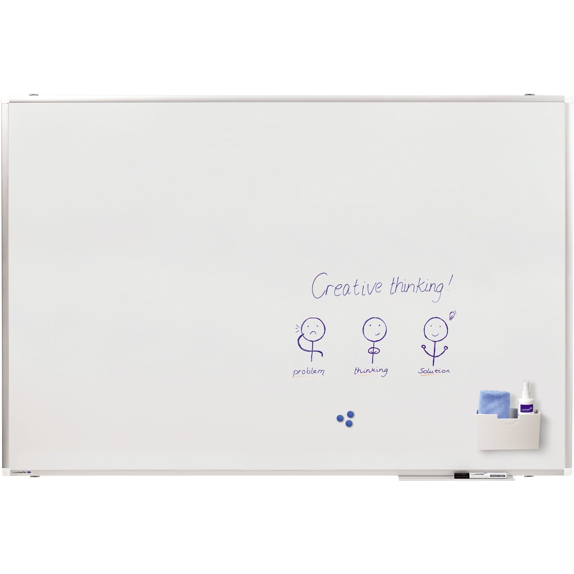 Bezeichnung: Legamaster Whiteboard PREMIUM PLUS Maße der Oberfläche: 150 x 100 cm (B x H) Tafel magnethaftend nicht beidseitig beschreibbar inkl. einem schwarzen Boardmarker TZ 1 Stahl emailliert weiß