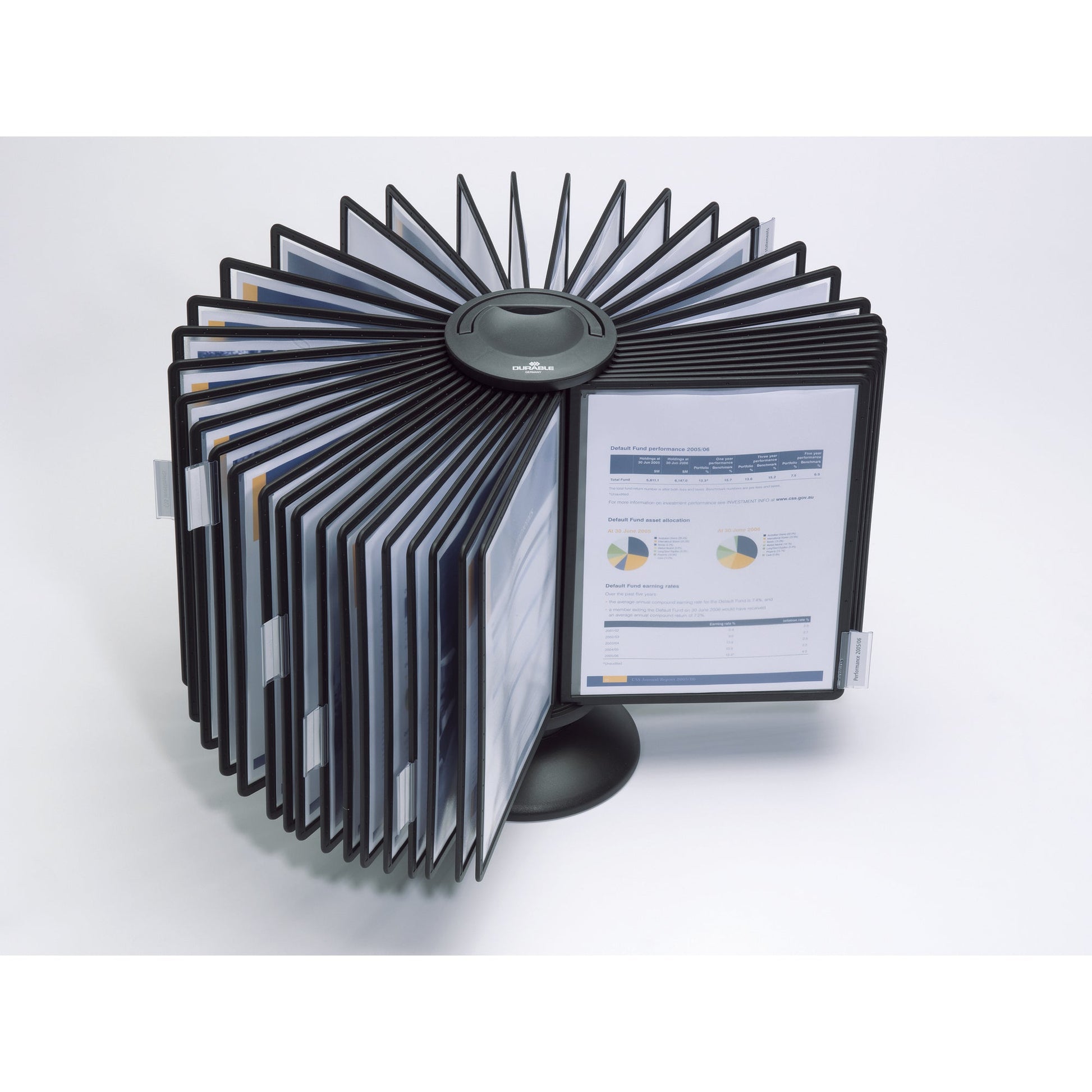 Bezeichnung: DURABLE Sichttafelständer SHERPA® CAROUSEL 40 41 x 59,5 x 41 cm (B x H x T) Polypropylen/Stahl/ABS Kunststoff/Polyamid Anzahl der mitgelieferten Sichttafeln: 40 Sichttafeln schwarz