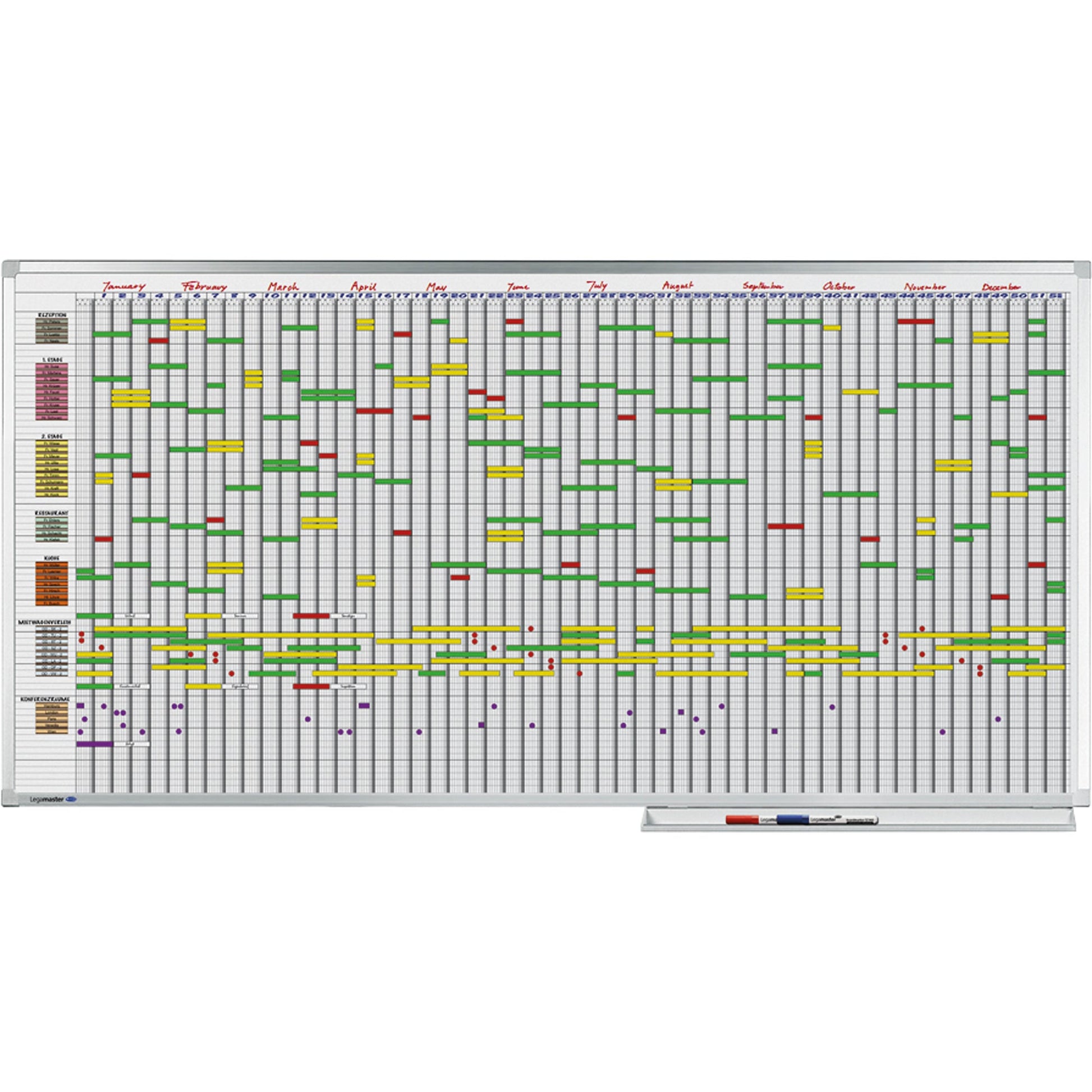 Bezeichnung: Legamaster Jahresplaner PROFESSIONAL 200 x 100 cm (B x H) 7-Tage-Woche 75 Mitarbeiter/Projekte inkl. Boardmarker, Datumstreifenset Aluminium weiß