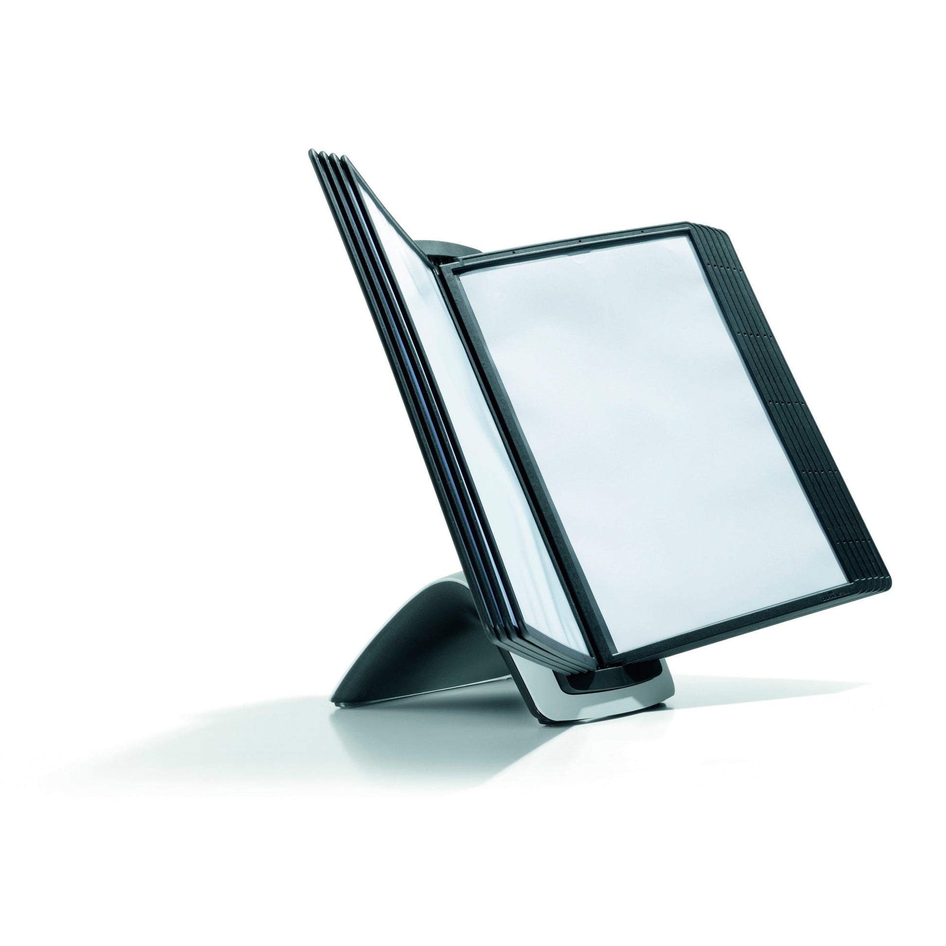 Bezeichnung: DURABLE Sichttafelständer SHERPA® STYLE TABLE 10 50 x 42 x 38,5 cm (B x H x T) Polyamid/Polypropylen/ABS Kunststoff/Polyurethan Anzahl der mitgelieferten Sichttafeln: 10 Sichttafeln schwarz
