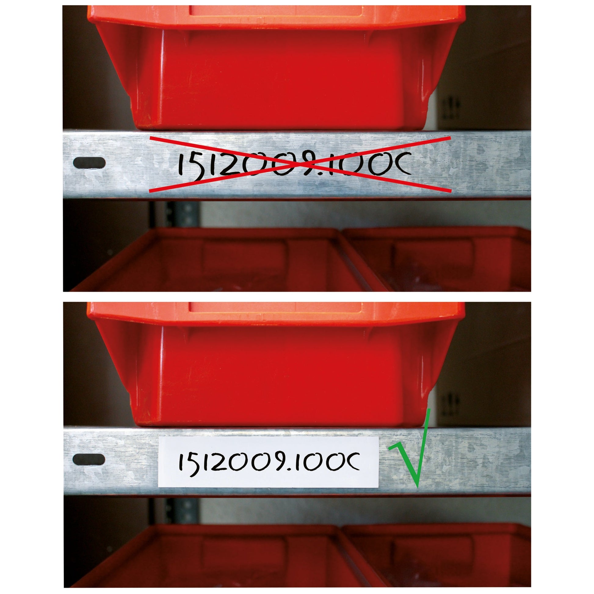 weißPraktisch: Zur wechselnden Beschriftung von eisenhaltigen Regalen im Lager oder Verkaufsraum. Auch in Schulen, Büros, Kellern, Küchen oder an Whiteboards. Individuell zuschneidbar. Haftkraft 42 g/cm². So geht's: Kennzeichnungsband abschneiden, beschriften, auf eisenhaltiger Fläche anbringen - fertig. Beschriftbar mit non-permanent-Markern.