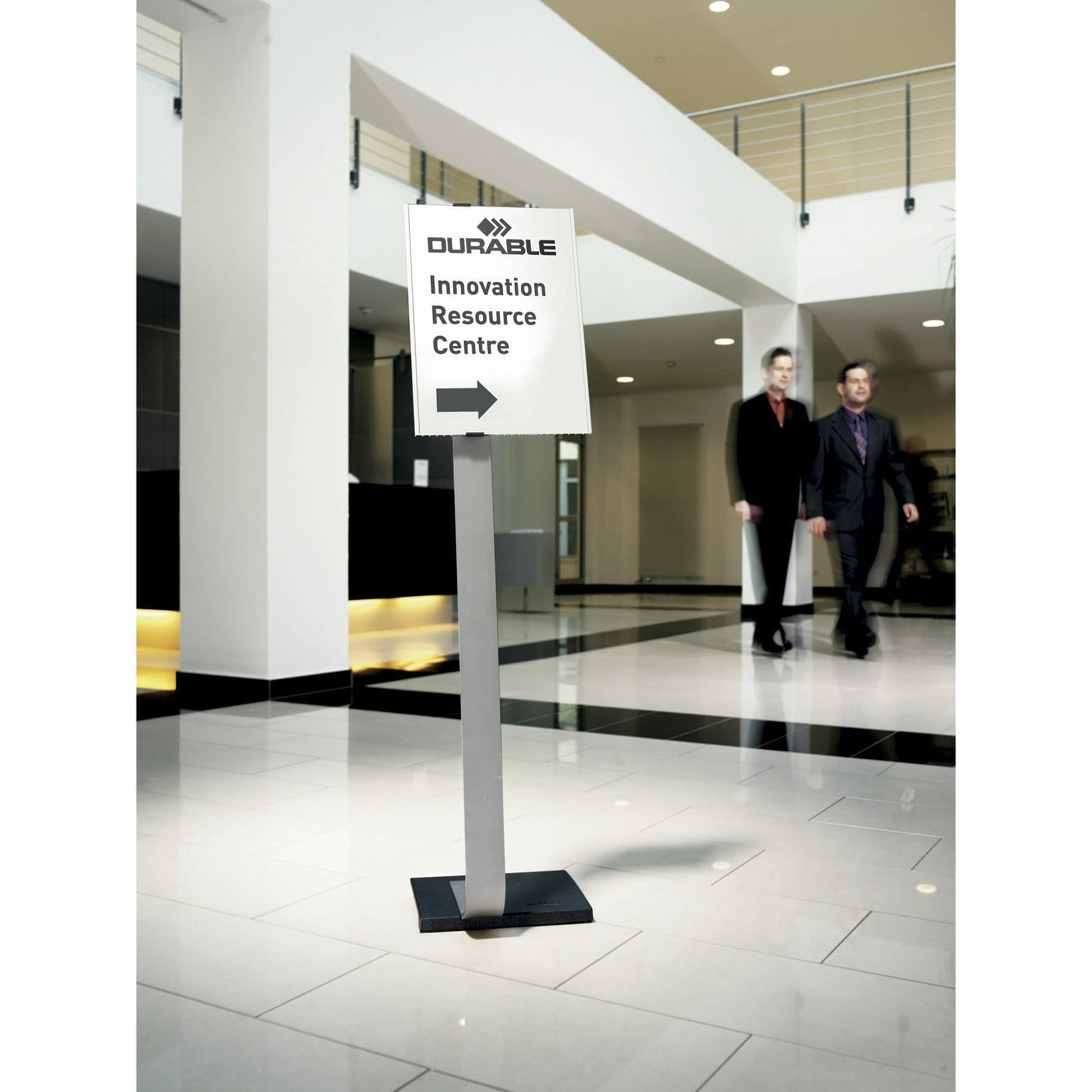 Bezeichnung: DURABLE Infodisplay INFO SIGN STAND 45,5 x 125 x 28 cm (B x H x T) DIN A3 silber metallic