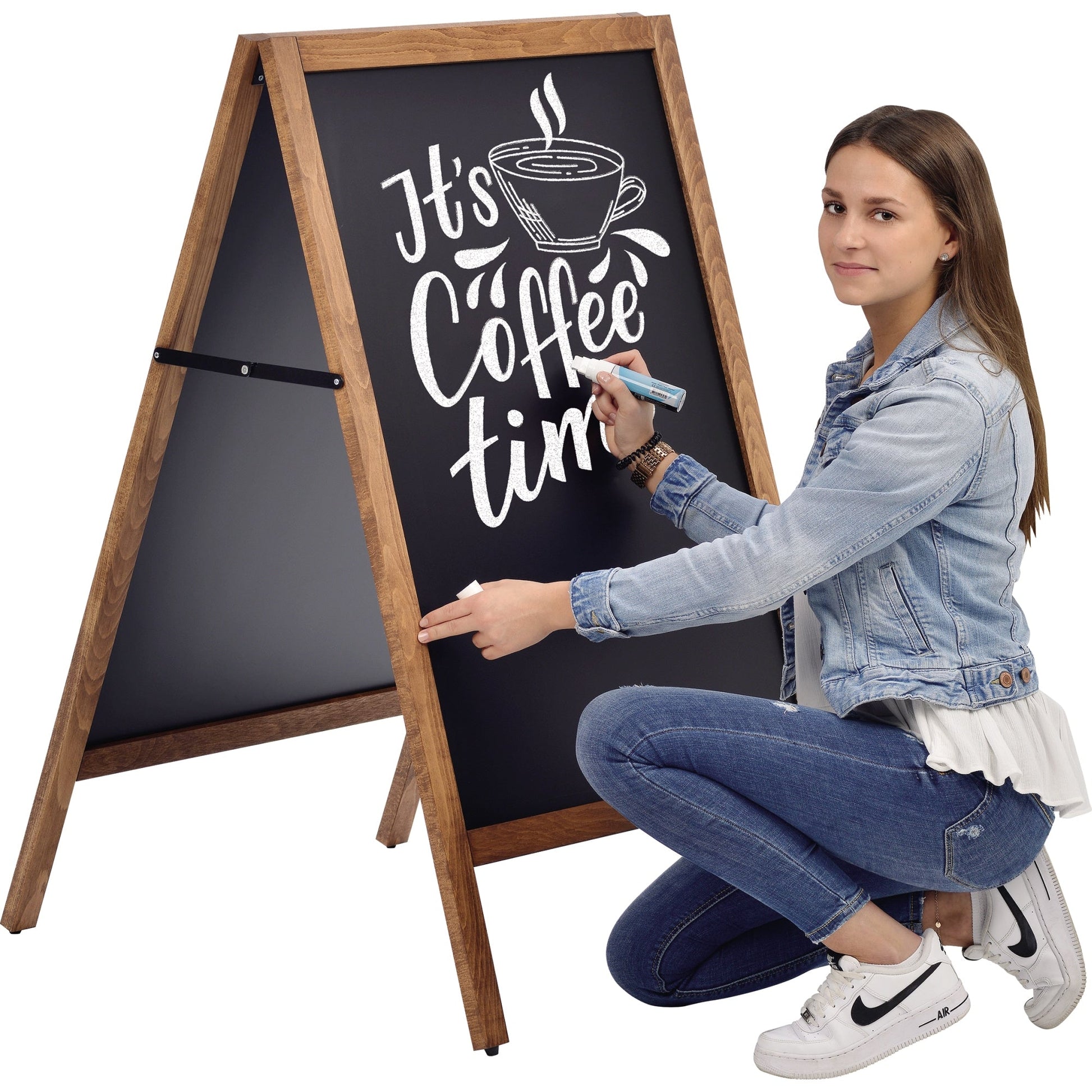 Bezeichnung: magnetoplan® Kundenstopper Multi 70,4 x 115 x 75 cm (B x H x T) DIN A1 Buchenholz braun