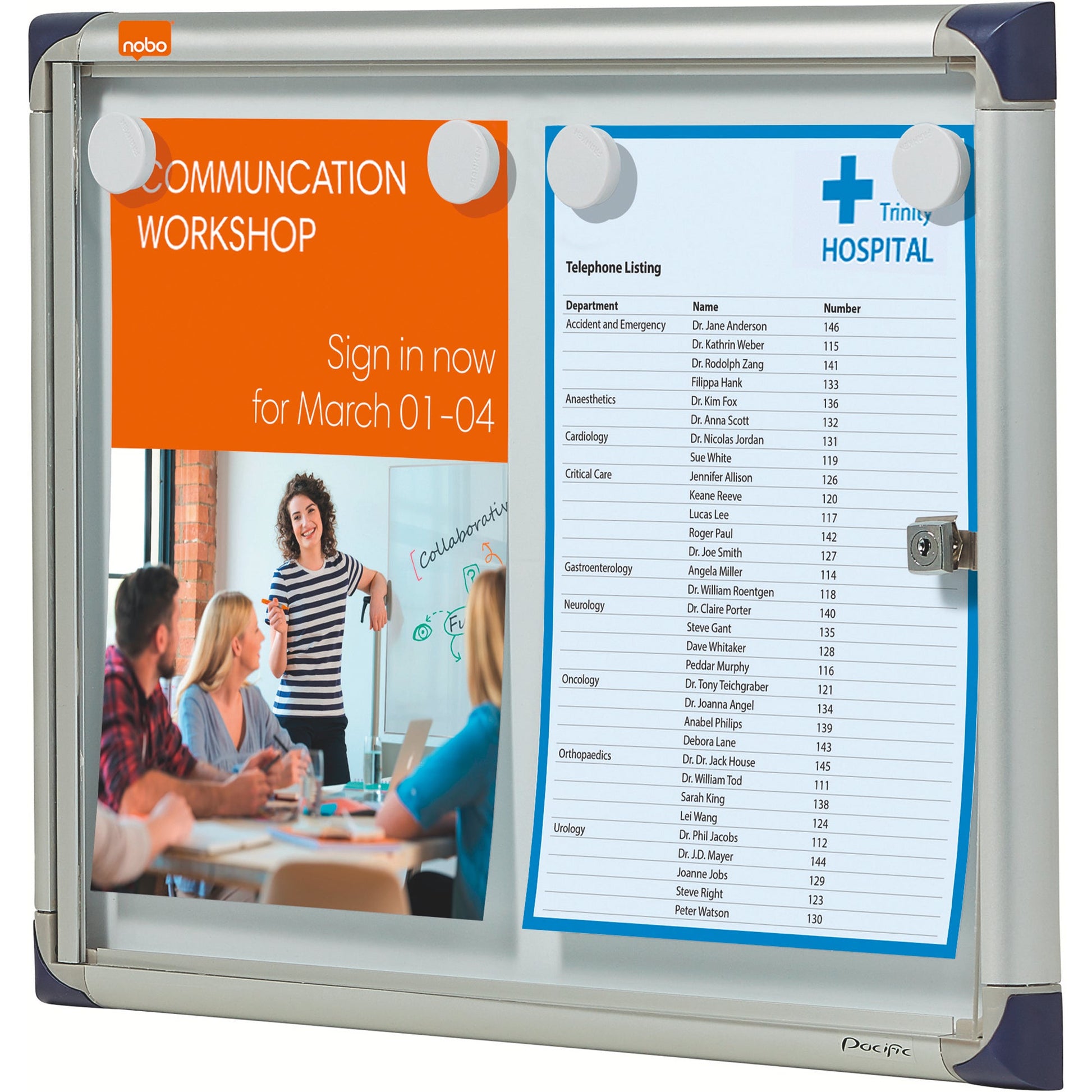 Bezeichnung: Nobo® Schaukasten Innenbereich 50,5 x 38,5 x 2,5 (B x H x T) 2 x DIN A4 mit Schloss Aluminium/Kunststoff silber
