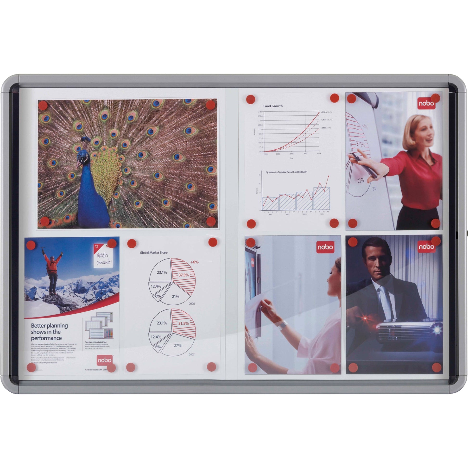 Bezeichnung: Nobo® Schaukasten Innenbereich 130 x 112 x 9,2 cm (B x H x T) 15 x DIN A4 mit Schloss Aluminium silber