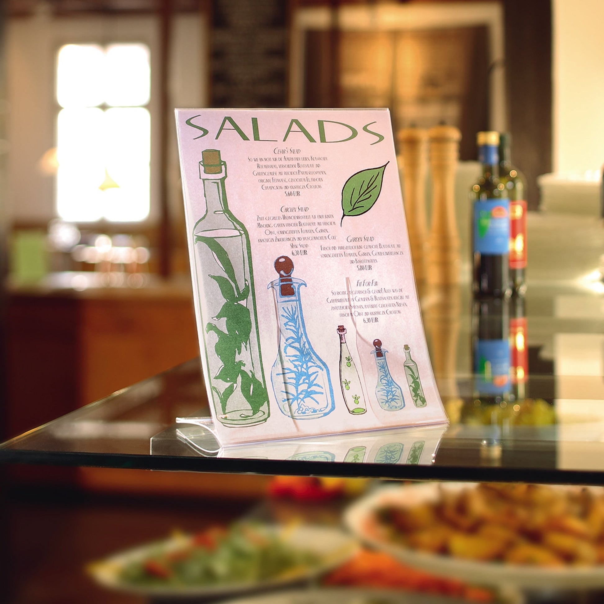 Bezeichnung: SIGEL Tischaufsteller 15 x 21 x 9,5 cm (B x H x T) DIN A5 einseitig verwendbar Hartplastik glasklar 2 St./Pack.