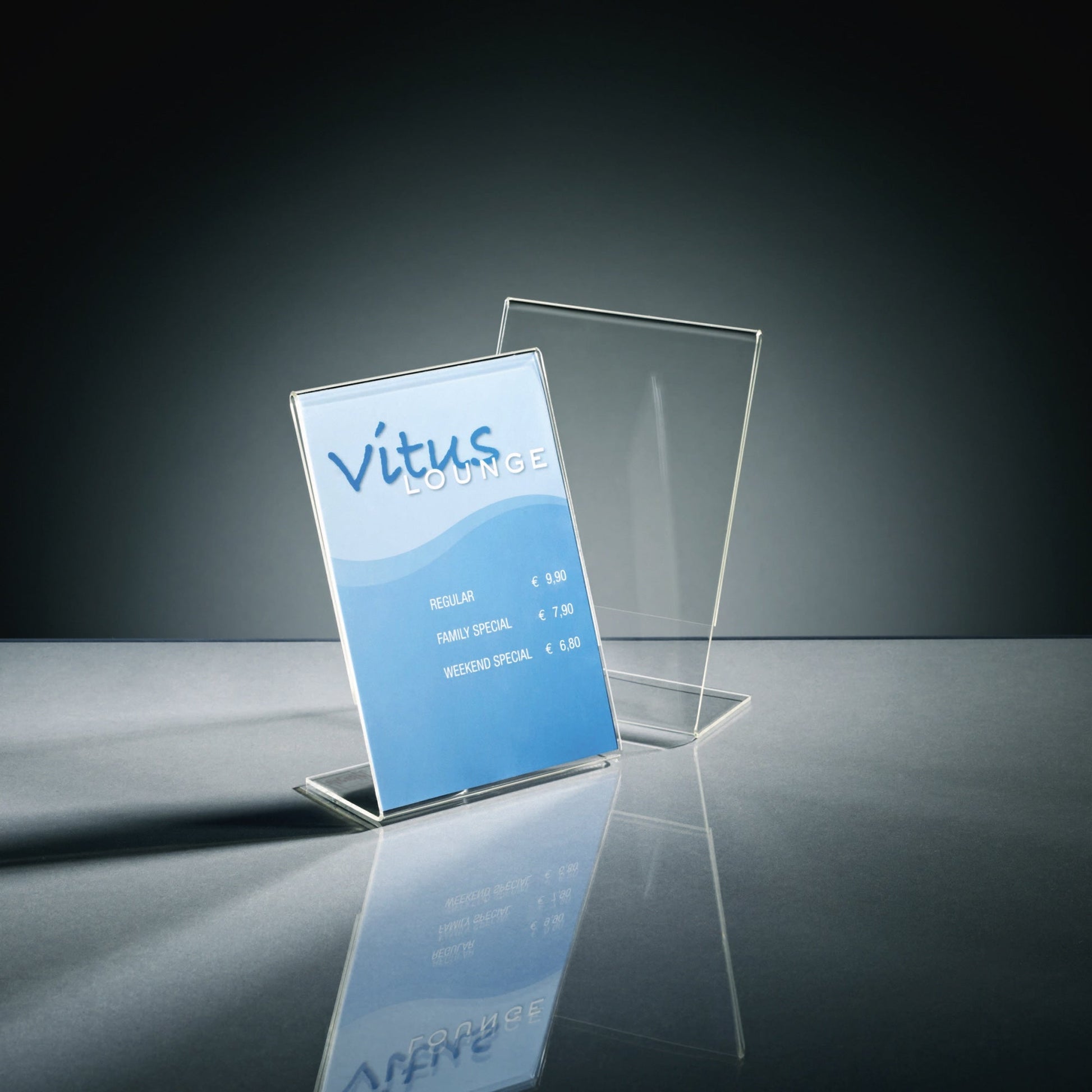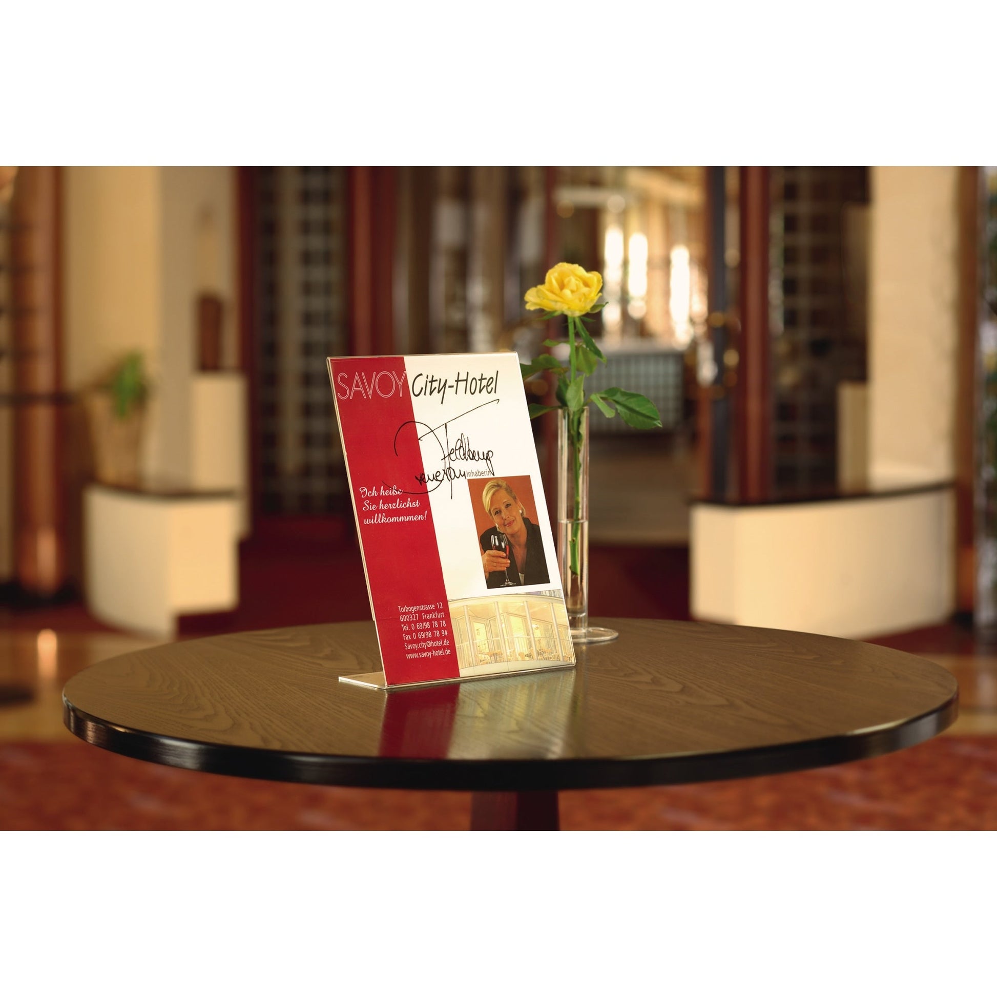 Bezeichnung: SIGEL Tischaufsteller schräg 10,6 x 15,5 x 5,3 cm (B x H x T) DIN A6 einseitig verwendbar Acryl glasklar