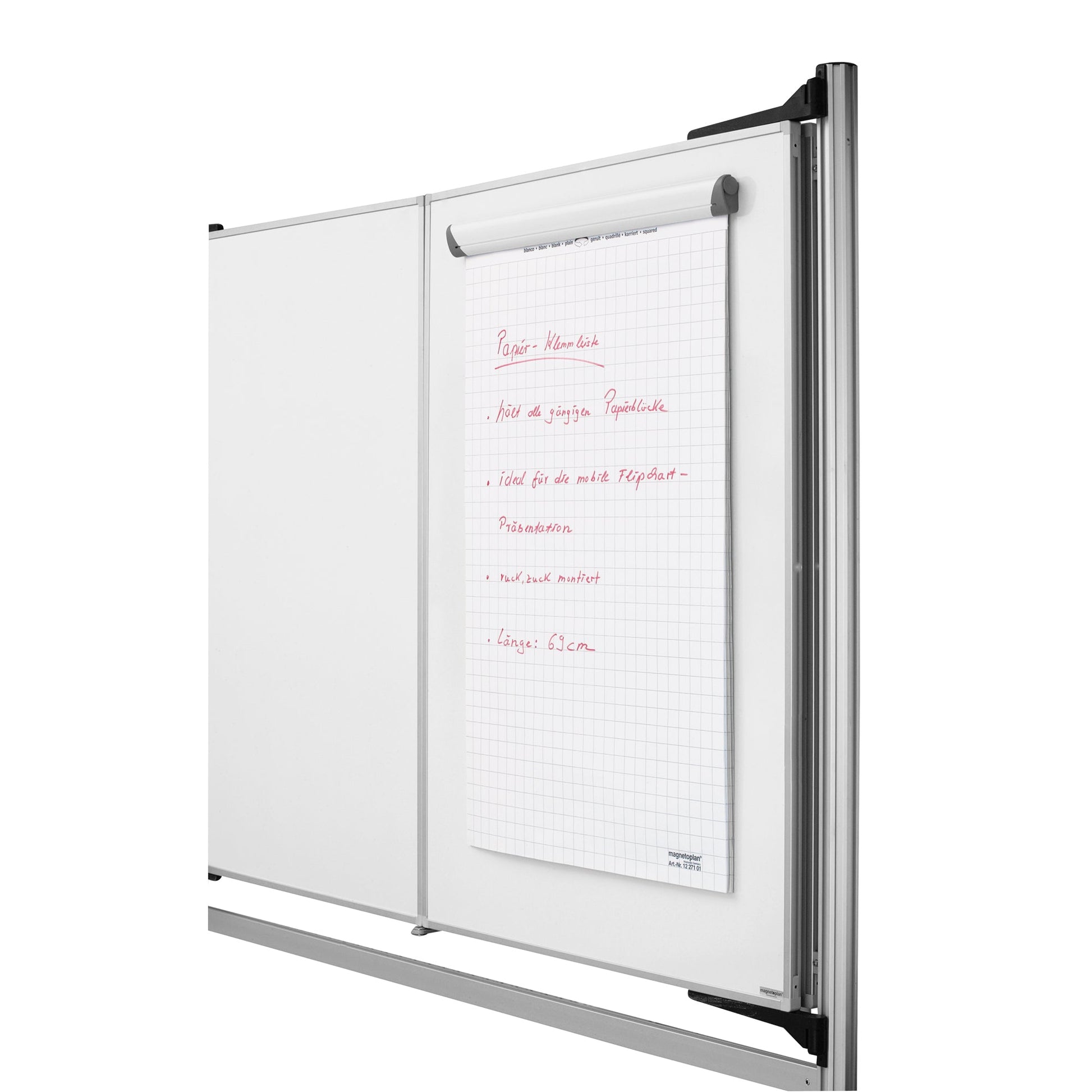 Bezeichnung: magnetoplan® Flipchartblockhalter Whiteboard 70 x 6 cm (B x H) weiß/grau