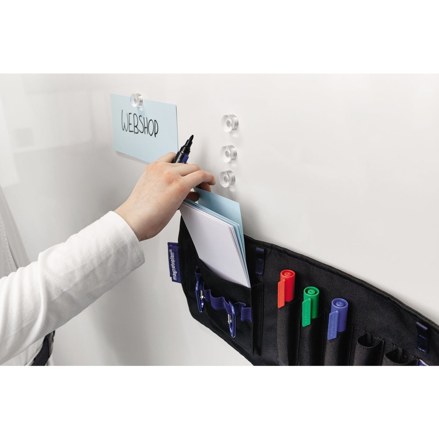 Bezeichnung: magnetoplan® Moderationstasche Action Wallet ausgeklappt: 40 x 19,5 cm (B x H), zusammengerollt: 8 x 19,7 cm (Ø x L) 8 Teile Polyester schwarz