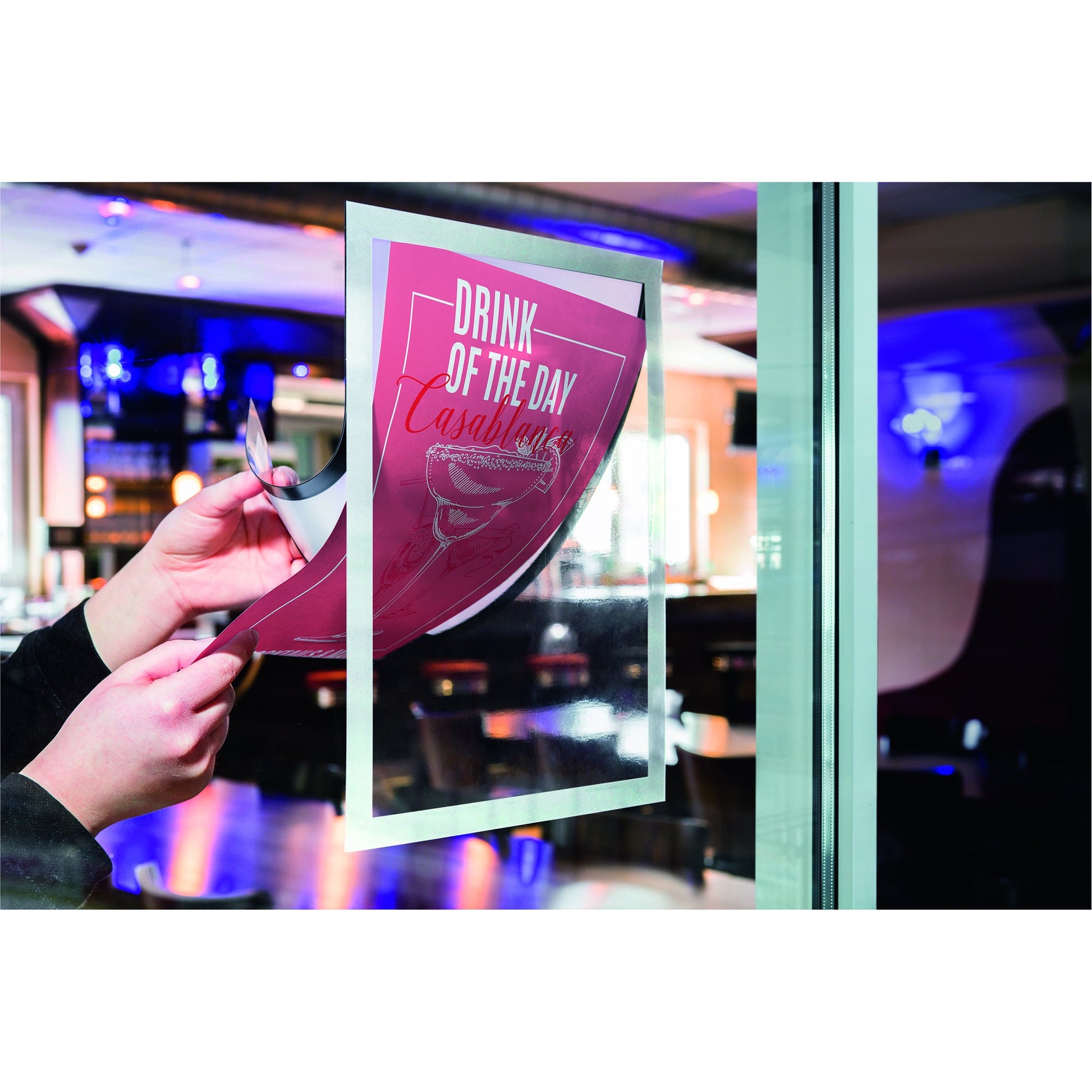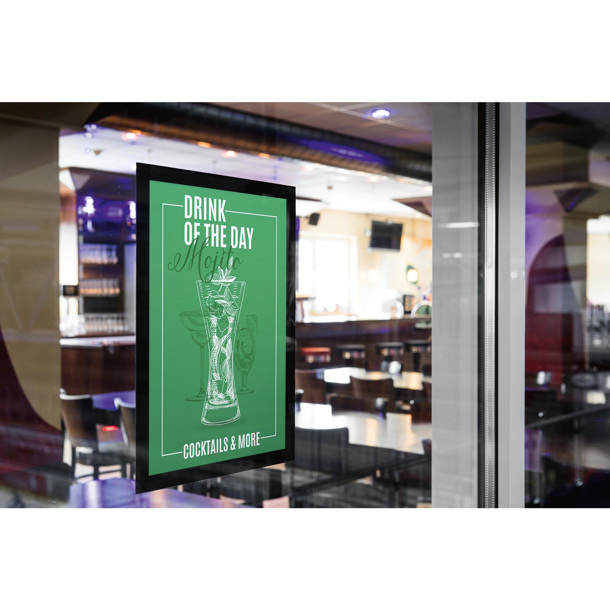 schwarzFolienrahmen für den Einsatz an Schaufensterscheiben, die direkter Sonneneinstrahlung ausgesetzt sind. Folienrahmen für die Präsentation von Informationen, Werbung und Postern. Von innen nach außen anzubringen. Einfache, blasenfreie Fixierung. UV-Beständigkeit bis zu 2 Jahren. Einsetzbar im Hoch- und Querformat.