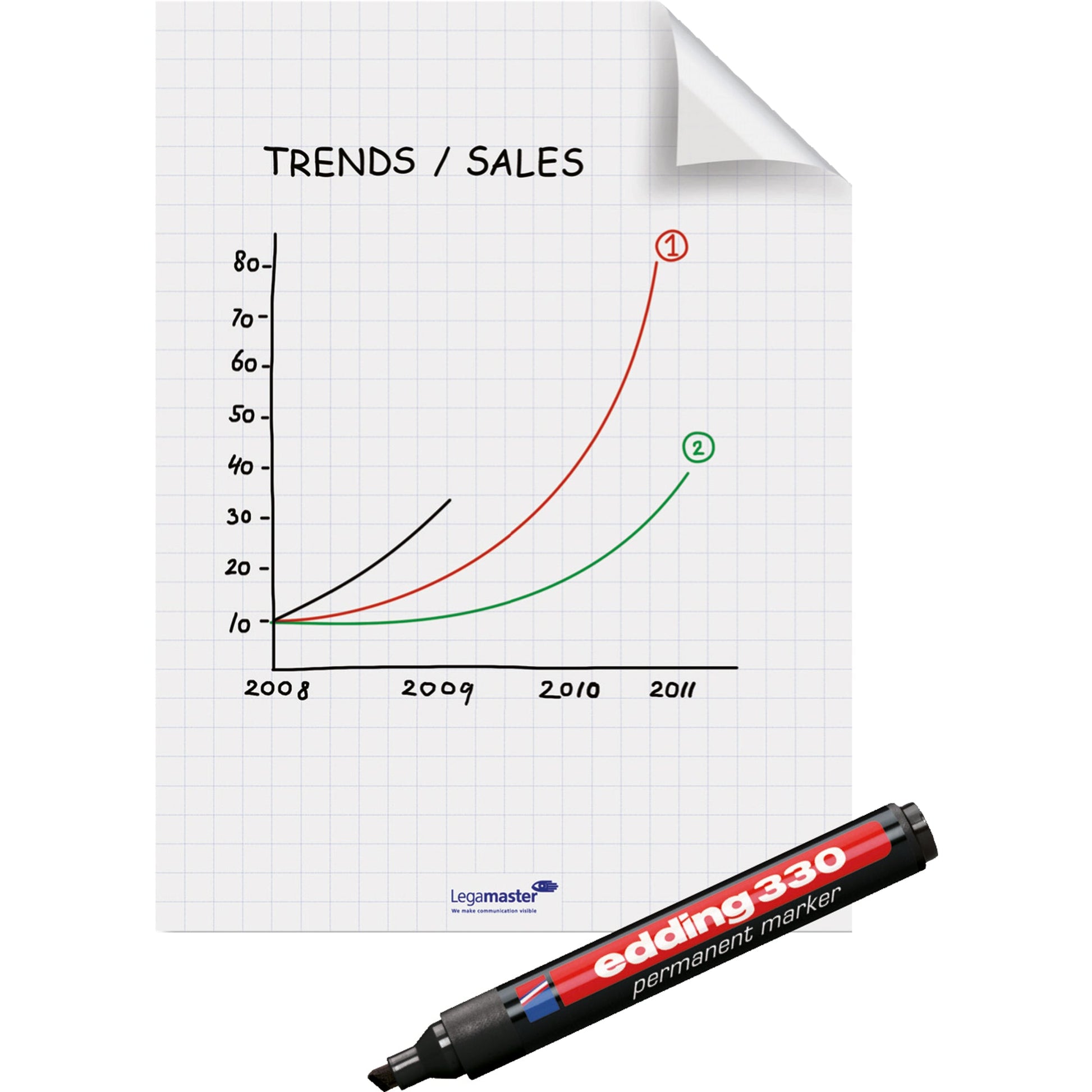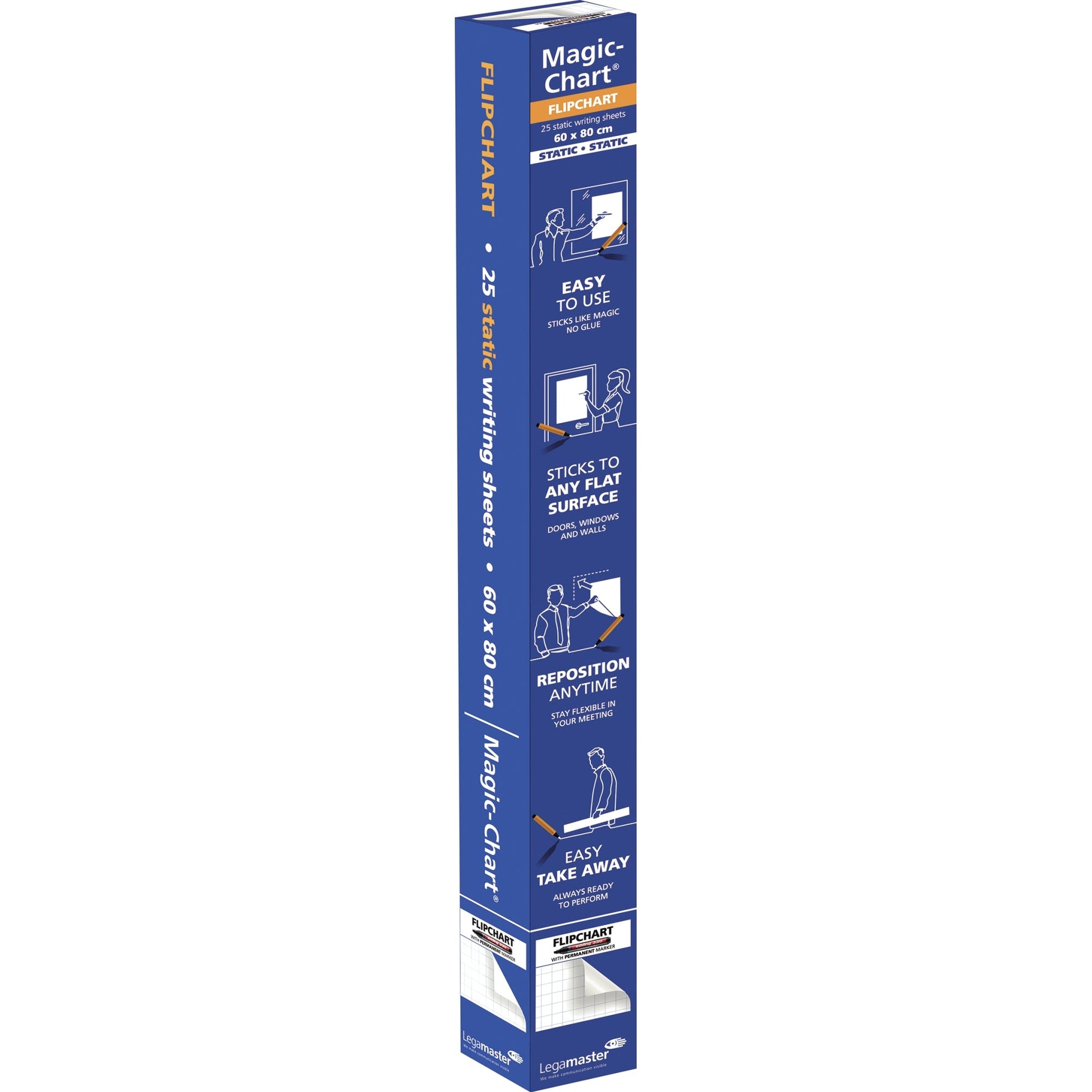 Bezeichnung: Legamaster Flipchartfolie Magic-Chart Flipchart 60 x 80 cm (B x H) 50µm selbsthaftend inkl. 1 Marker Polypropylen weiß 25 Bl./Pack.