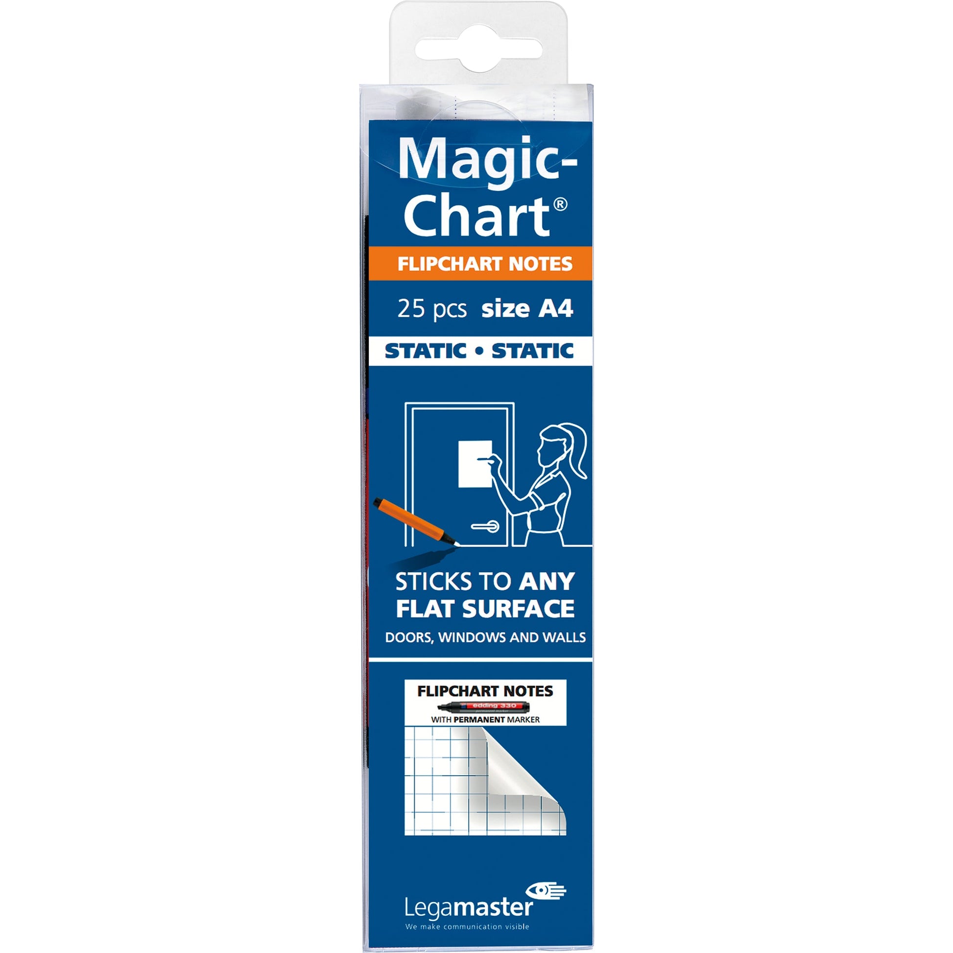 Bezeichnung: Legamaster Flipchartfolie Magic-Chart Flipchart 20 x 30 cm (B x H) 50µm selbsthaftend inkl. 1 Marker Polypropylen weiß 25 Bl./Pack.