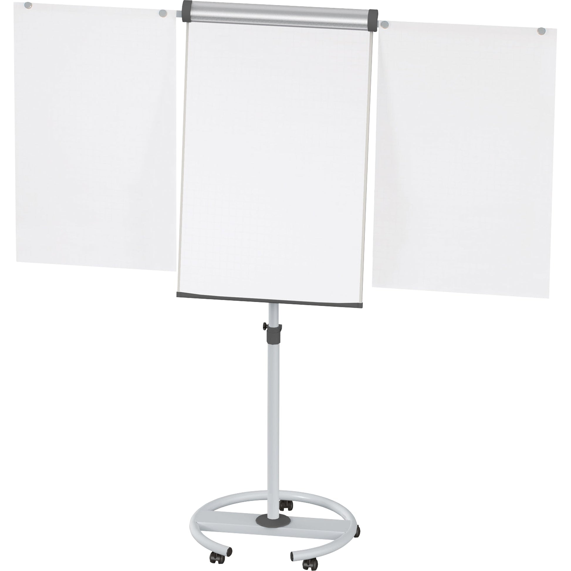 weißPraktisch: Zwei Papierhalter, seitlich ausklappbar und magnethaftend, aus stabilem Stahl, z. B. für beschriebene Flipchartblätter. Fuß und Säule aus kräftigem Stahlrohr. Leichtes Bewegen ohne Kraftaufwand durch die runde Form des Fußes und den 5 feststellbaren Laufrollen. Tafel Komfortabel von vorn zu bedienen, sackt nicht unbeabsichtigt ab. Blockhalter, horizontal einzeln verschiebbar für alle handelsüblichen Blockformate. Ablageschale über die gesamte Breite aus bruchsicherem Kunststoff für Flipchartzubehör, Marker etc.