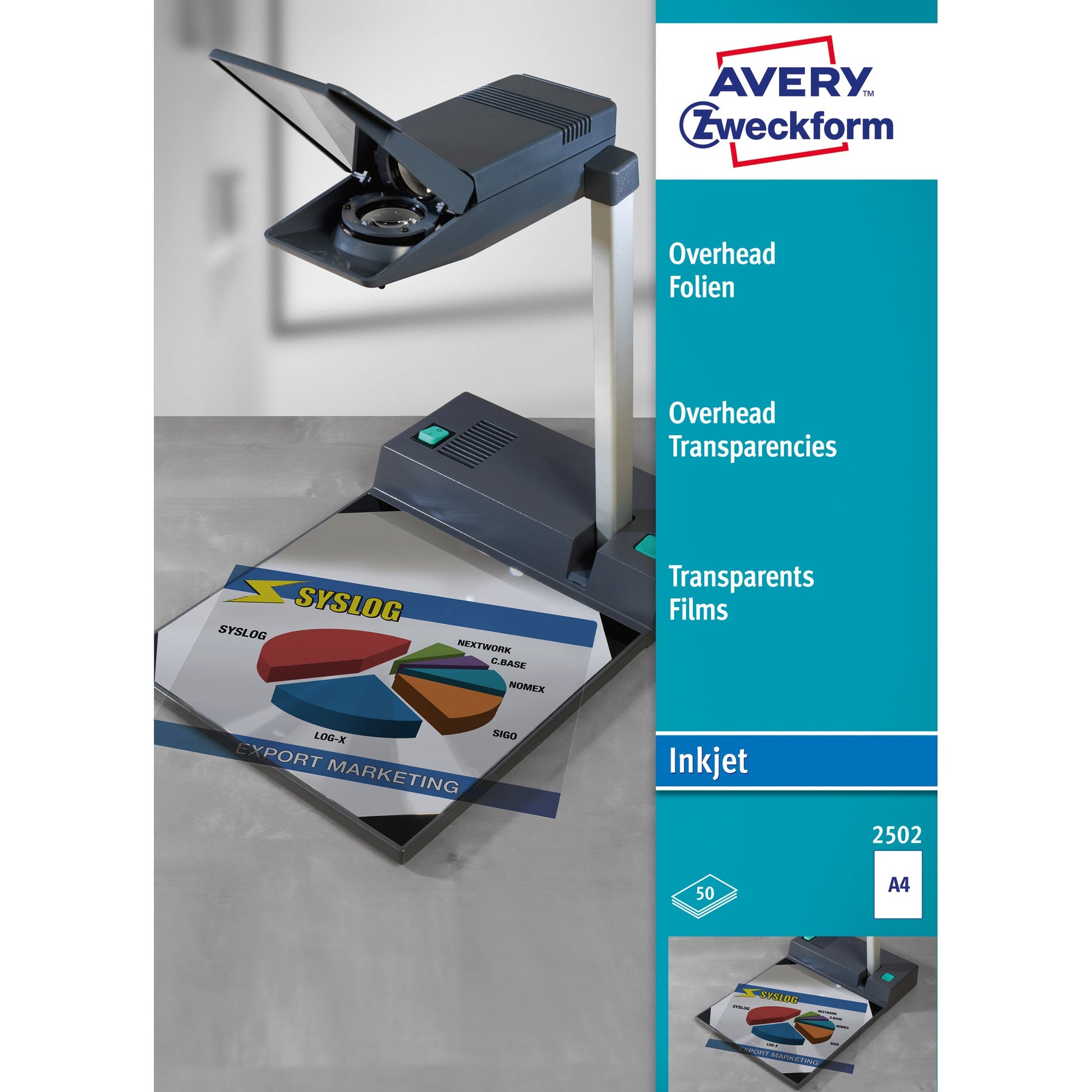 Bezeichnung: Avery Zweckform OHP Inkjetfolie DIN A4 110µm stapelverarbeitbar transparent 50 Folien/Pack.
