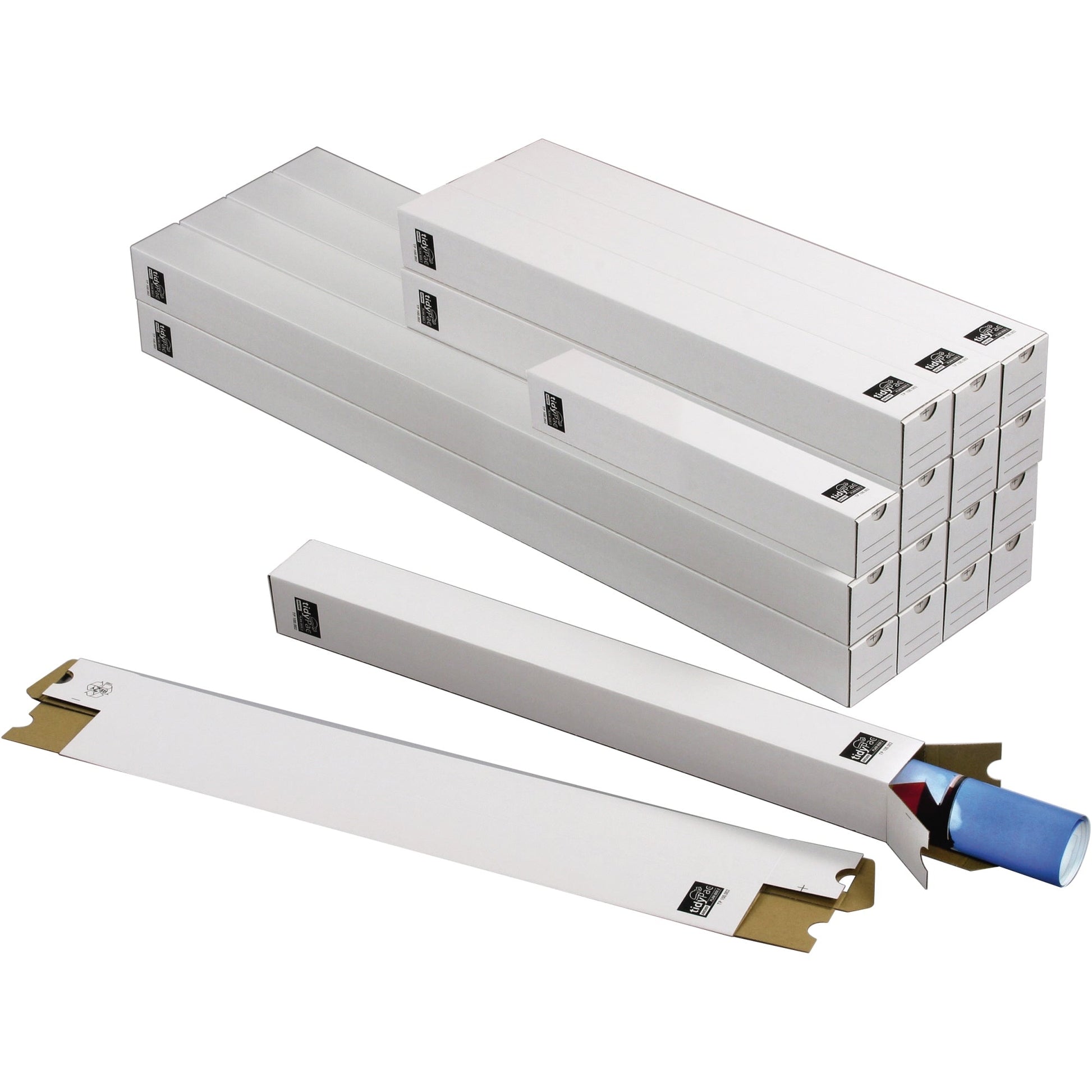 Bezeichnung: tidyPac® Versandhülse 7,5 x 7,5 x 75 cm (B x H x L) mit Steckverschluss Wellkarton weiß