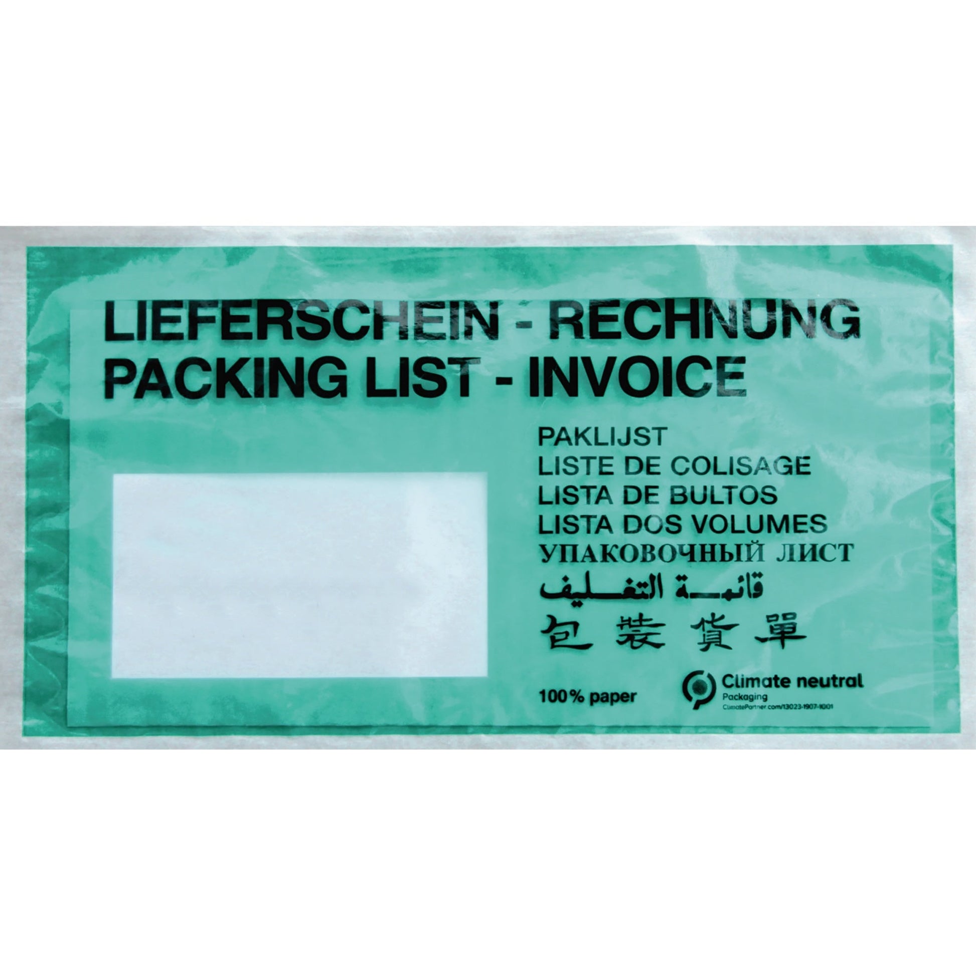 Bezeichnung: Dokumententasche Lieferschein/Rechnung DIN lang 240 x 130 mm (B x H) Papier dunkelgrün 1.000 St./Pack.