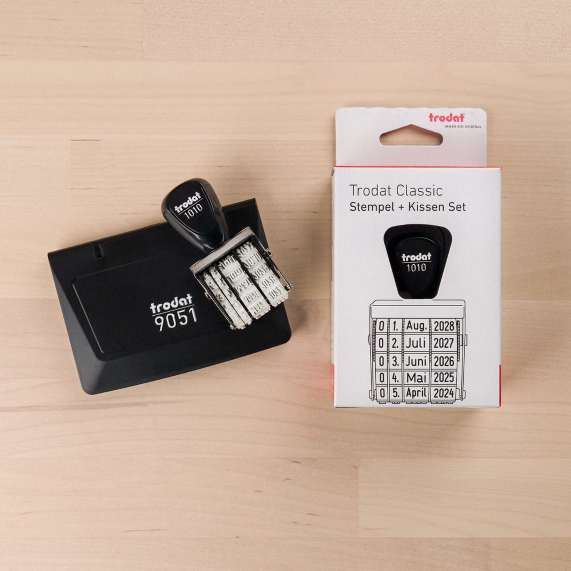 Bezeichnung: trodat® Datumstempel Classic 1010 + Kissen Set 26 x 4 mm (B x H) Monat in Buchstaben inkl. schwarzes Stempelkissen 9051 Metall/Kunststoff