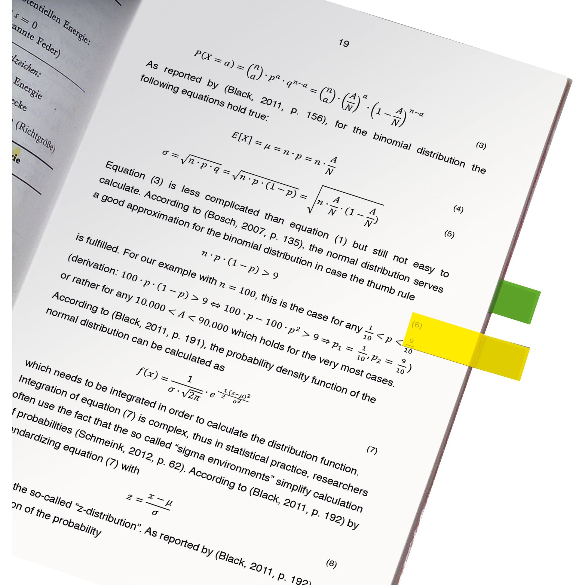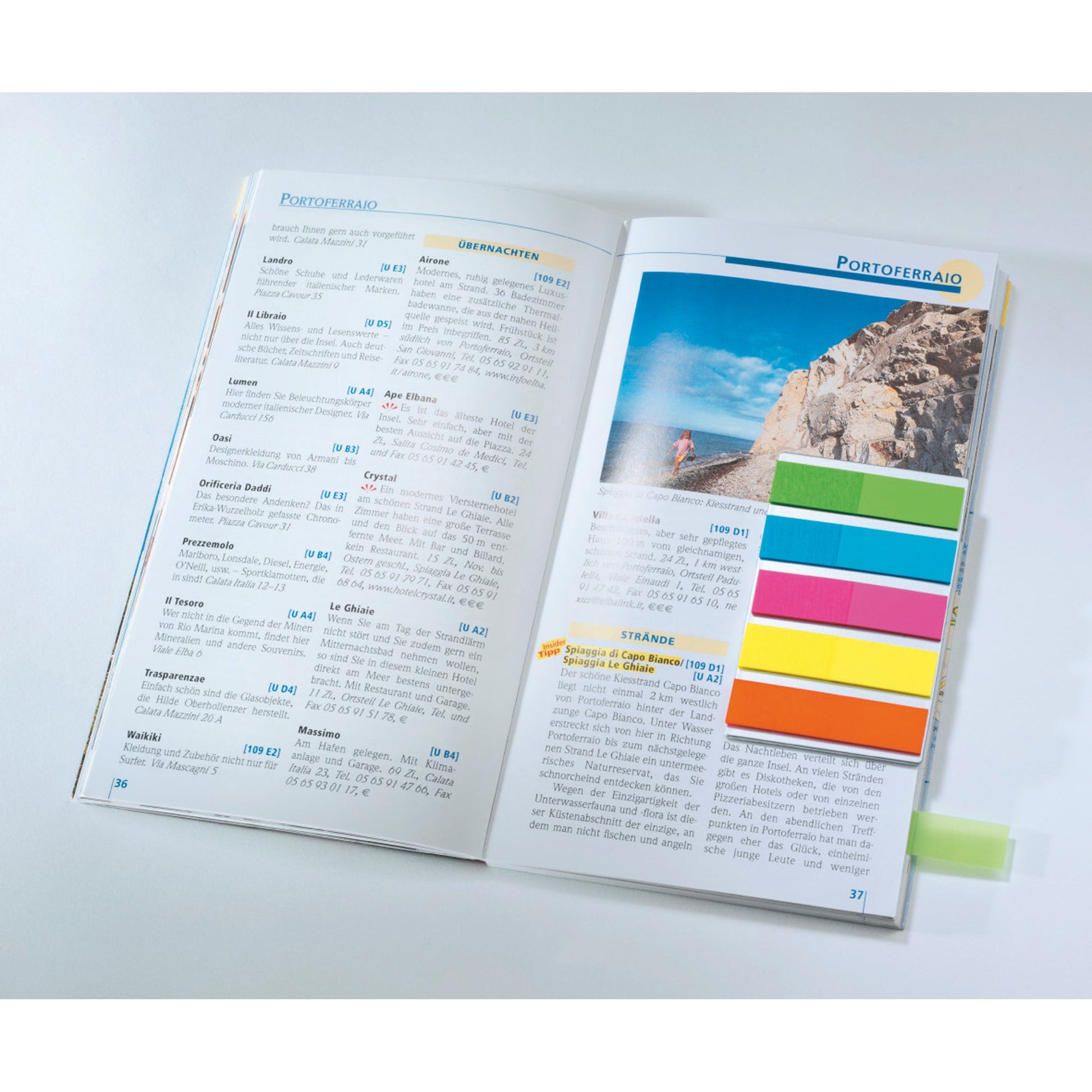 grün, blau, violett, gelb, orangeReißfeste Haftmarker, besonders geeignet zur punktgenauen Markierung von Textstellen oder Bildern.