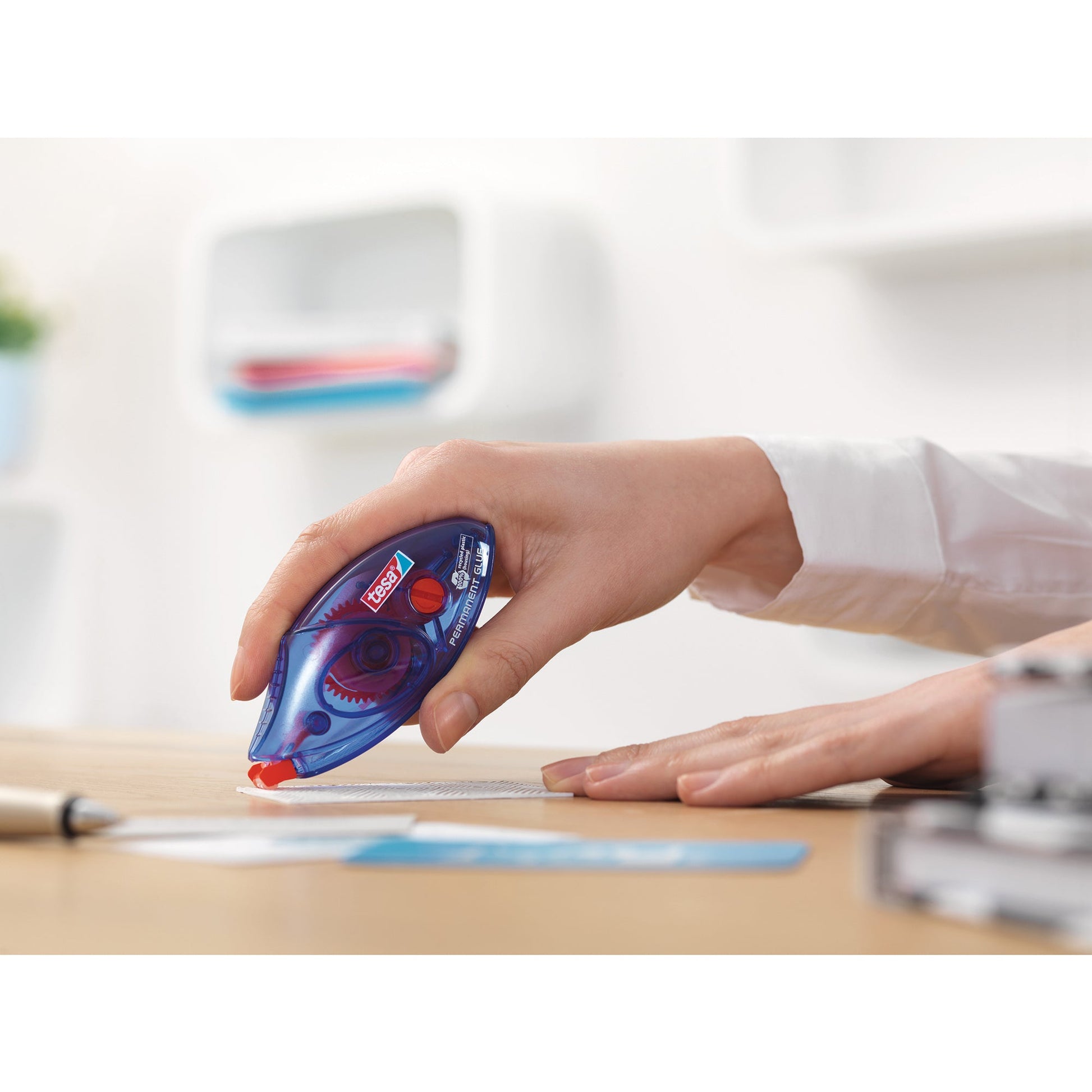 blauDer tesa® Kleberoller permanent ecoLogo® ist ideal für eine saubere, dauerhafte und starke Verklebung geeignet. Zudem wurde der tesa® Kleberoller permanent ecoLogo® im ÖKO-TEST Magazin 11/2013 im Test Bastelmaterialien mit “sehr gut” bewertet. Rötlicher Klebestreifen macht bereits aufgetragenen Kleber sichtbar. Praktisch und handlich.