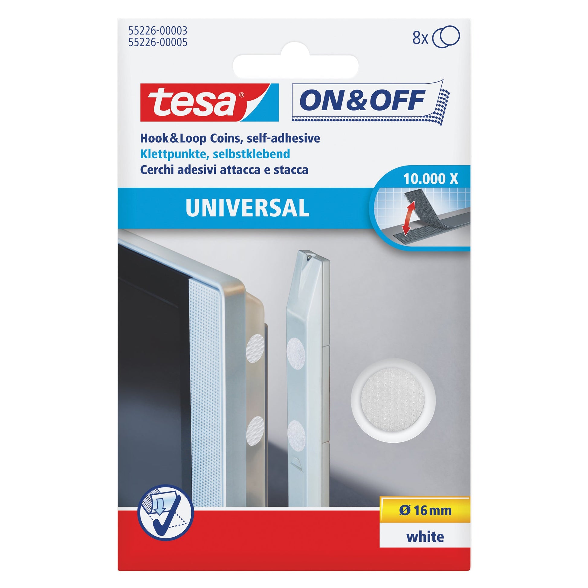 Bezeichnung: tesa® Klettpunkt On & Off 16mm Polyamid weiß 8 St./Pack.
