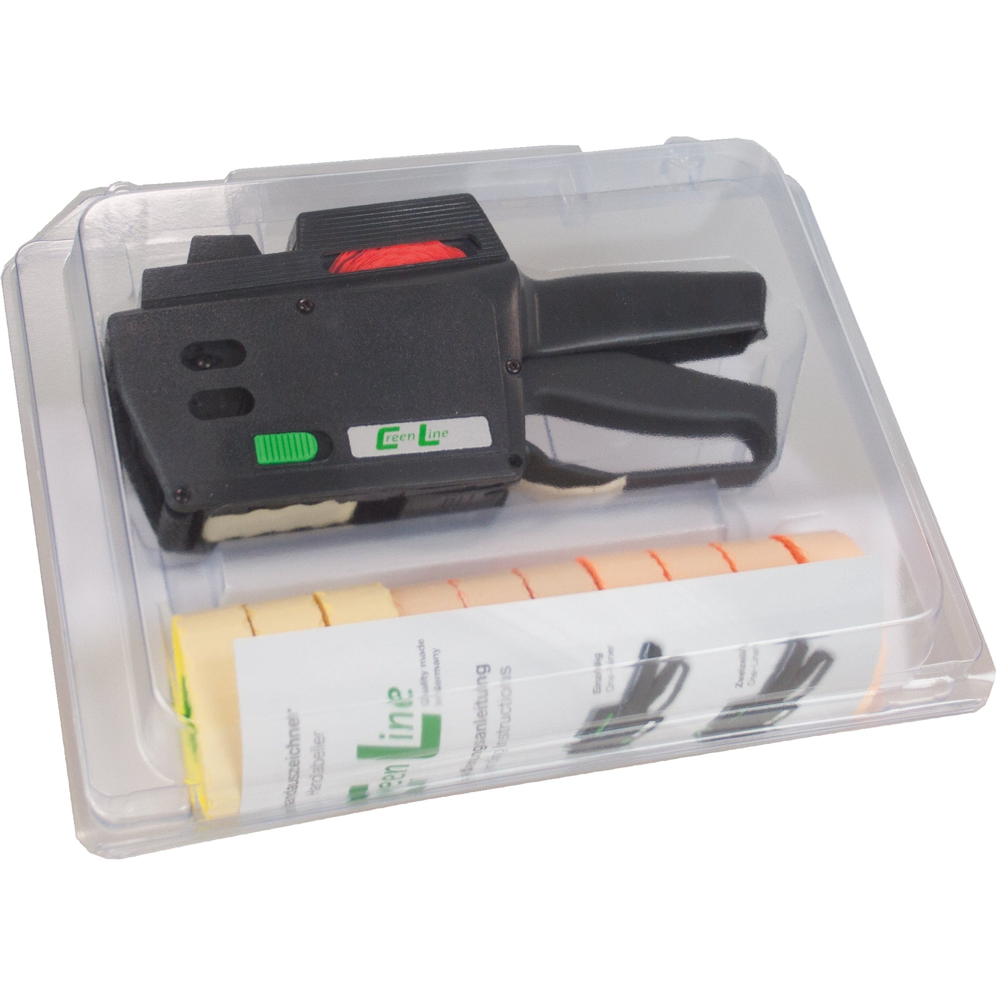 Ausführung des Inhalts (bzgl. der Hauptausstattungsteile): Preisauszeichnungsgerät CL 6.22, Ersatz-Farbrolle, 11 Rollen Etiketten (4 x fl. rot, 4 x fl. orange, 3 x fl. gelb) 22 x 12 mm mit Gummierung 2