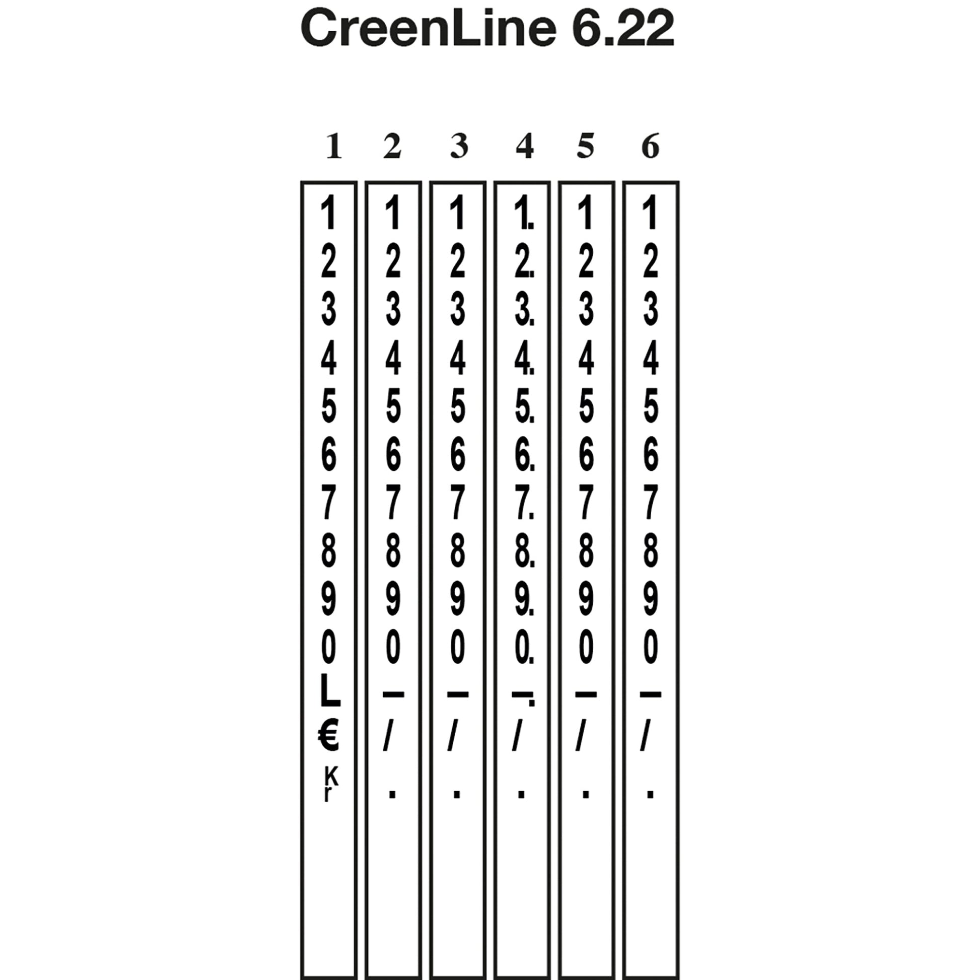 Bezeichnung: CreenLine Preisauszeichnungsgerät Set 6.22 1 Druckzeile 6 Zeichen/Zeile Preisauszeichnungsgerät CL 6.22, Ersatz-Farbrolle, 11 Rollen Etiketten (4 x fl. rot, 4 x fl. orange, 3 x fl. gelb) 22 x 12 mm mit Gummierung 2