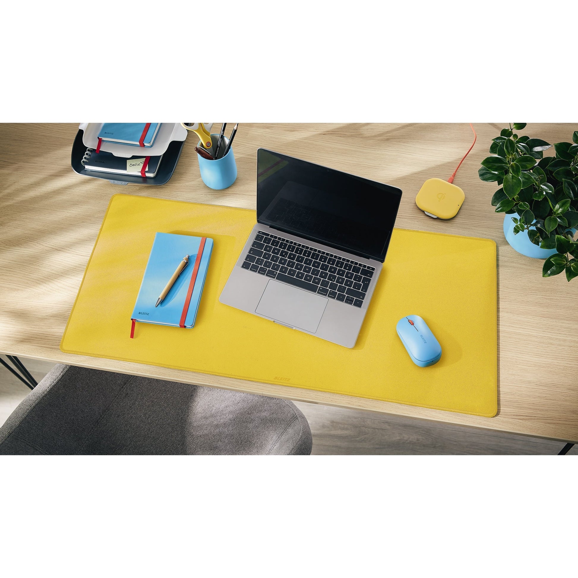 gelbFühlen Sie sich mit dem Cosy Sortiment von Leitz wie zu Hause, wo auch immer Sie sind. Mit seinem minimalistischen Design und den einladenden matten Farben können Sie Ihrem Arbeitsbereich Stil und Farbe verleihen. Die Cosy Schreibtischunterlage schützt Ihren Schreibtisch vor Schäden, die durch den täglichen Gebrauch entstehen, wie z. B. Verschüttetes, Kratzer und Dellen, und hält ihn sauber und frei von Flecken. Diese multifunktionale Schreibtischunterlage schützt nicht nur Ihren Schreibtisch, sondern kann dank ihrer glatten, matten Oberfläche auch als vollwertige Schreibtisch-Mausunterlage verwendet werden. Die Leitz Cosy Schreibtischunterlage ist mit allen Laser- und optischen Mäusen kompatibel, damit Sie den ganzen Tag entspannt und produktiv bleiben.