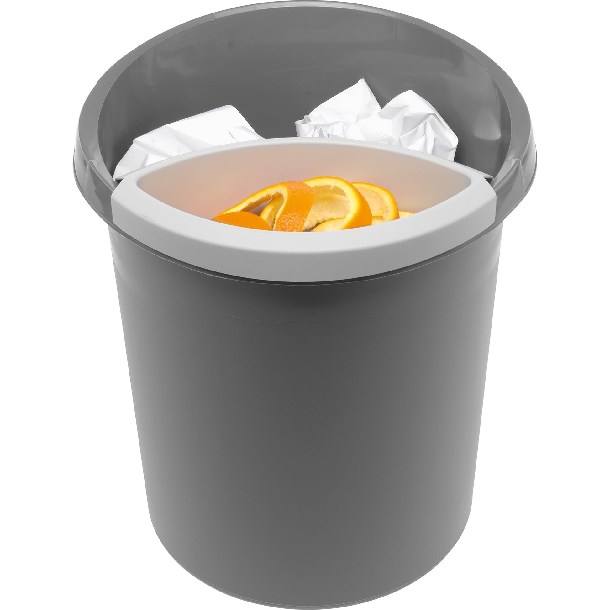 lichtgrauOptimal für Büro, Hotels und den Privatbereich. Dank der glatten Innenoberfläche ist der Abfalleinsatz besonders reinigungsfreundlich.