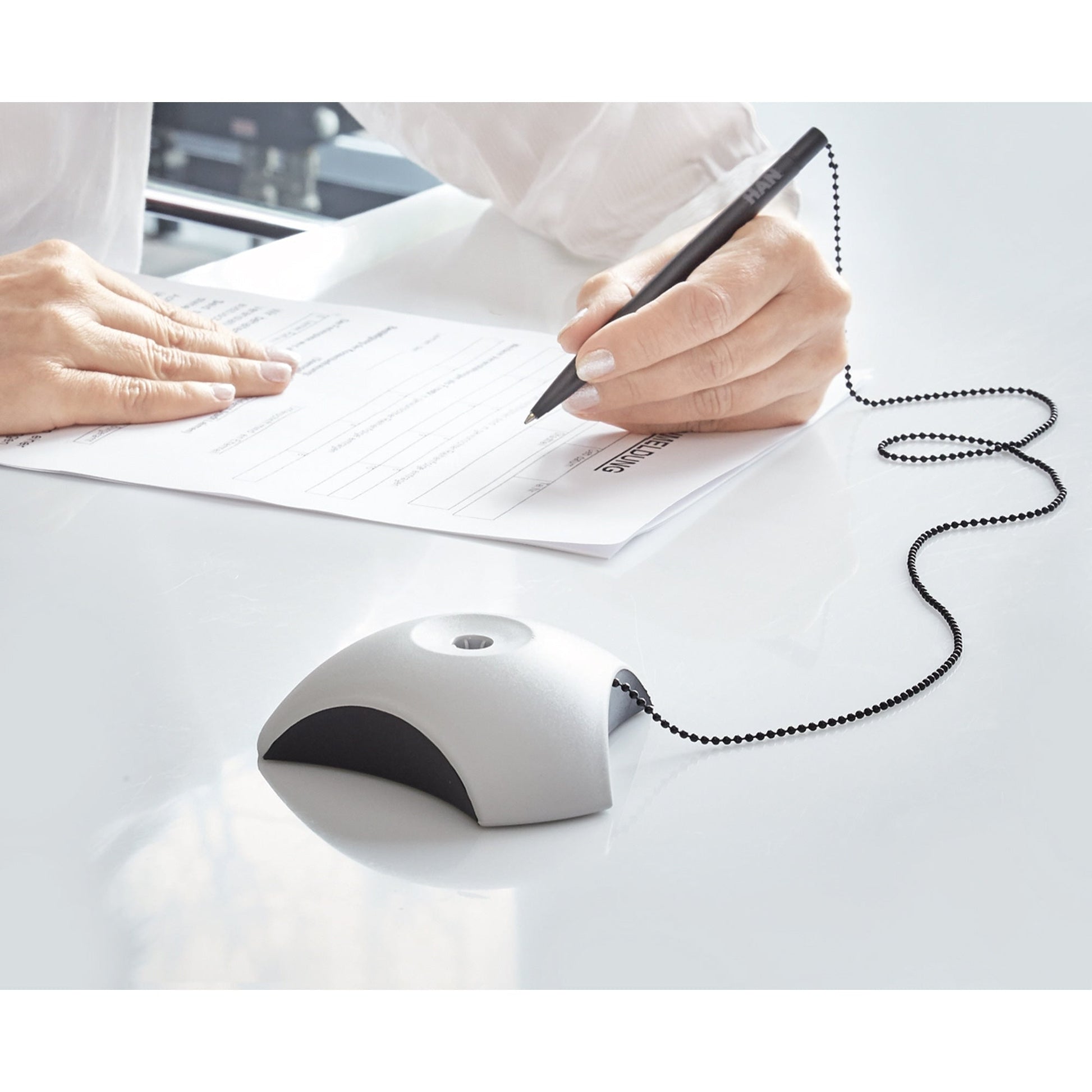 Bezeichnung: HAN Kugelschreiberständer DELTA 11,4 x 15,5 x 11,4 cm (B x H x T) schwarz Polystyrol lichtgrau/schwarz