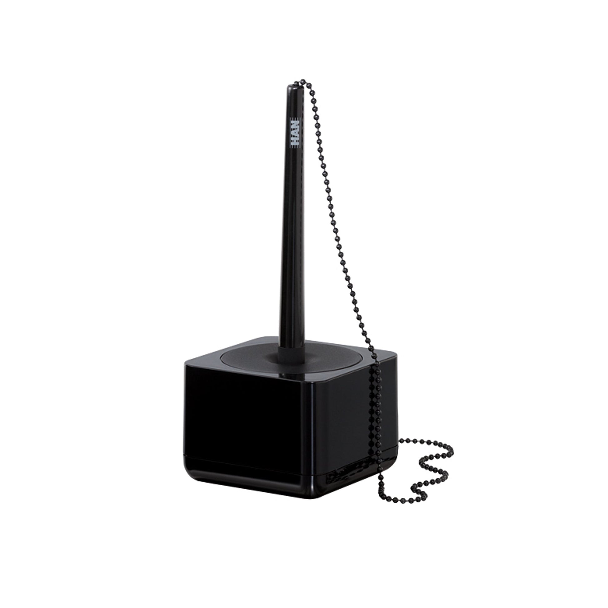 schwarzHochwertige, stabile und schwere Ausführung ist durch ihren schweren Fuß besonders standfest. Möbelschonend durch einen vollflächigen, rutschfesten Schaumstoffboden. Inkl. doppelseitiger Klebefolie zur zusätzlichen Befestigung bei Bedarf. Ausgestattet mit einer austauschbaren, dokumentenechten Qualitätsmine (ISO 12757) in schwarz. Besonders Linkshänder schätzen die große Bewegungsfreiheit der 68 cm langen, starken Kugelkette. Design und Farbe sind abgestimmt auf alle Produkte der i-LINE Serie.